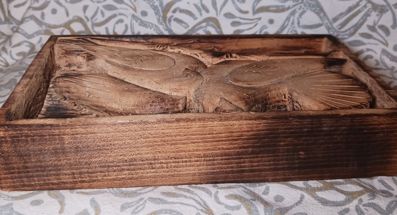 Hand Carved Two Birds Wood Sculpture 10.5 X 6 X 2 Rustic Decor Doves