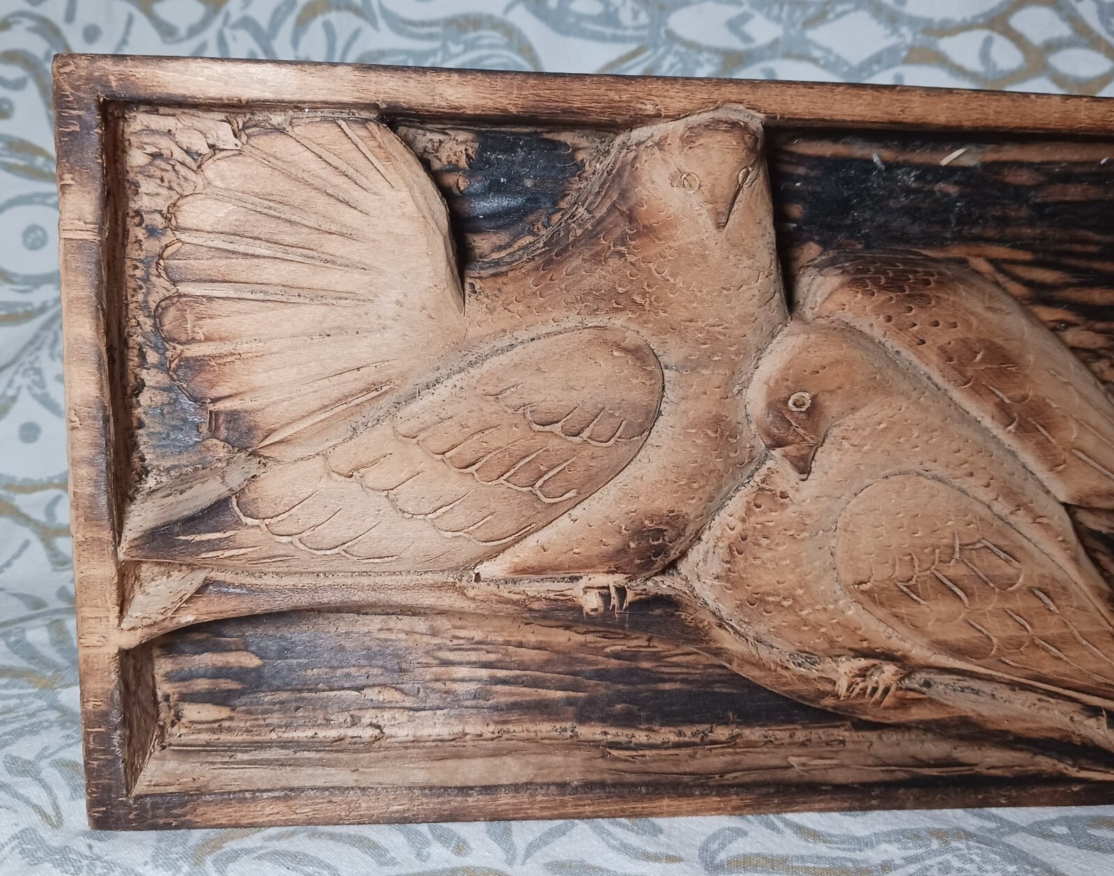 • Hand Carved Two Birds Wood Sculpture 10.5 X 6 X 2 Rustic Decor Doves