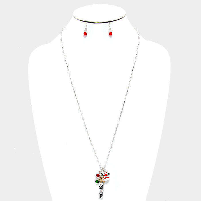 Silver and gold pierced multi colored Santa necklace set