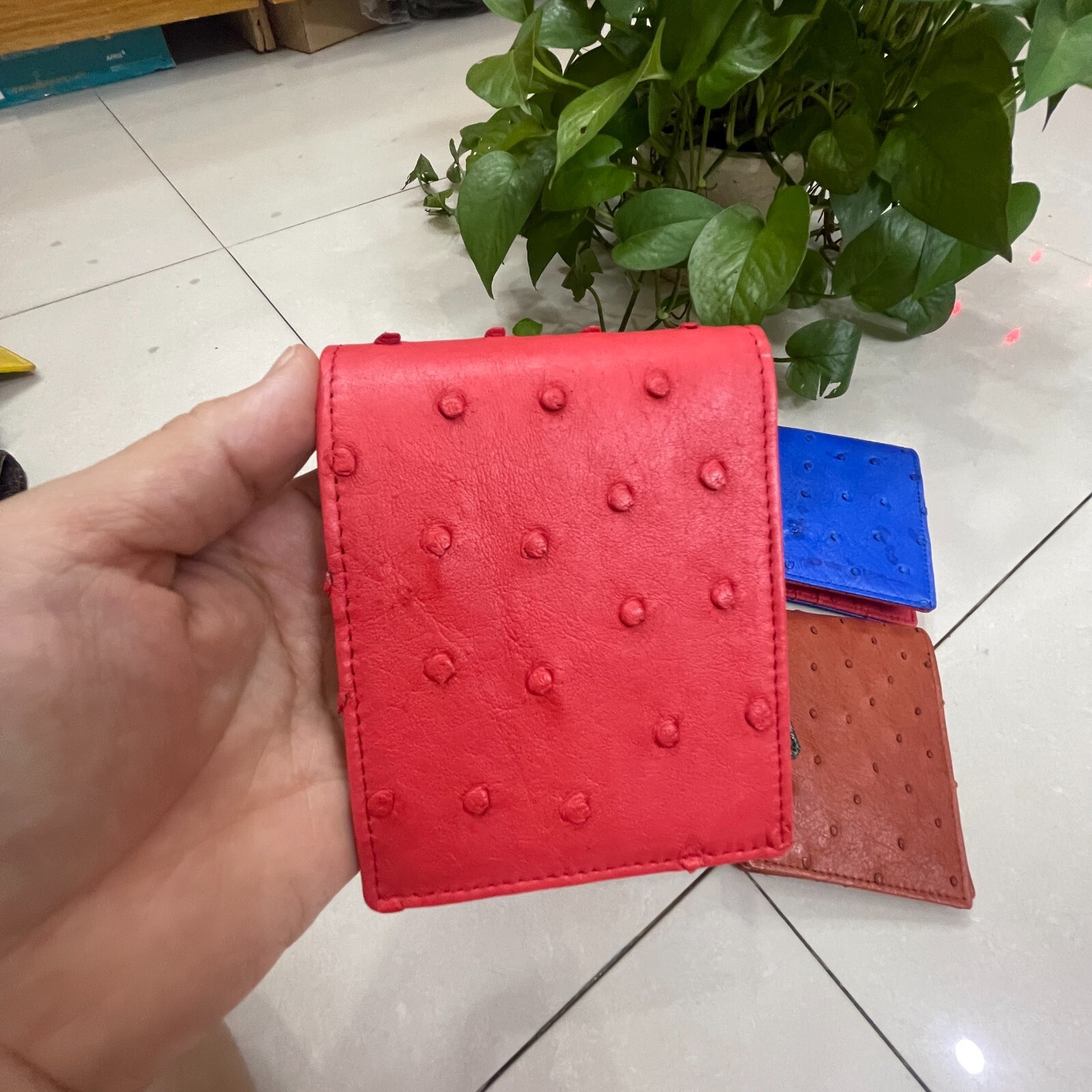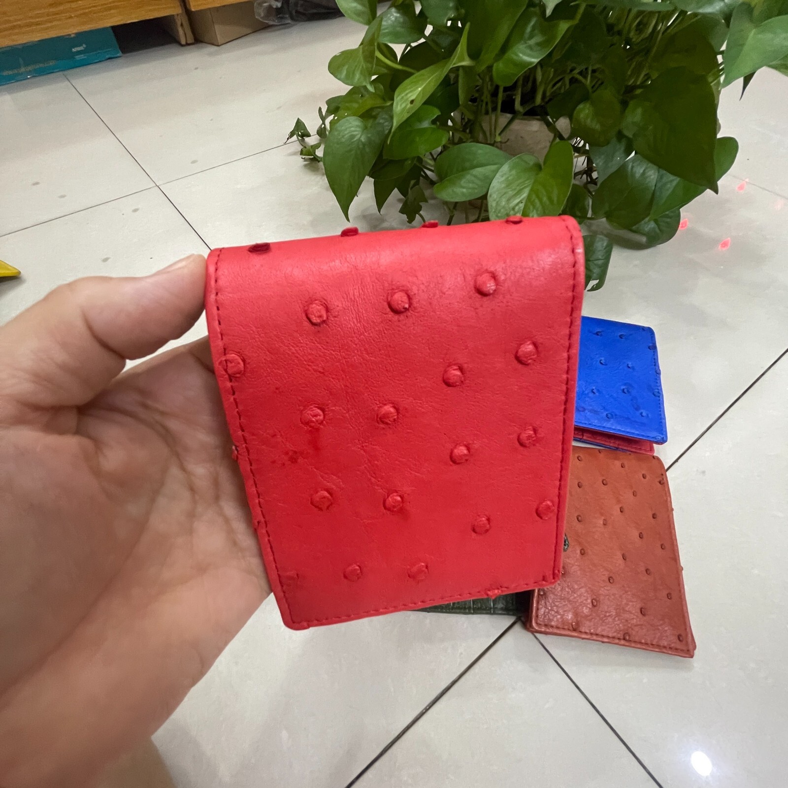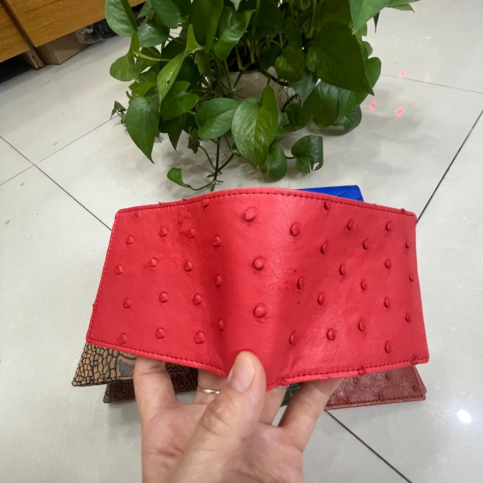 как выглядит DOUBLE SIDE Genuine Ostrich Leg Leather Skin MENS BIFOLD WALLET, RED фото