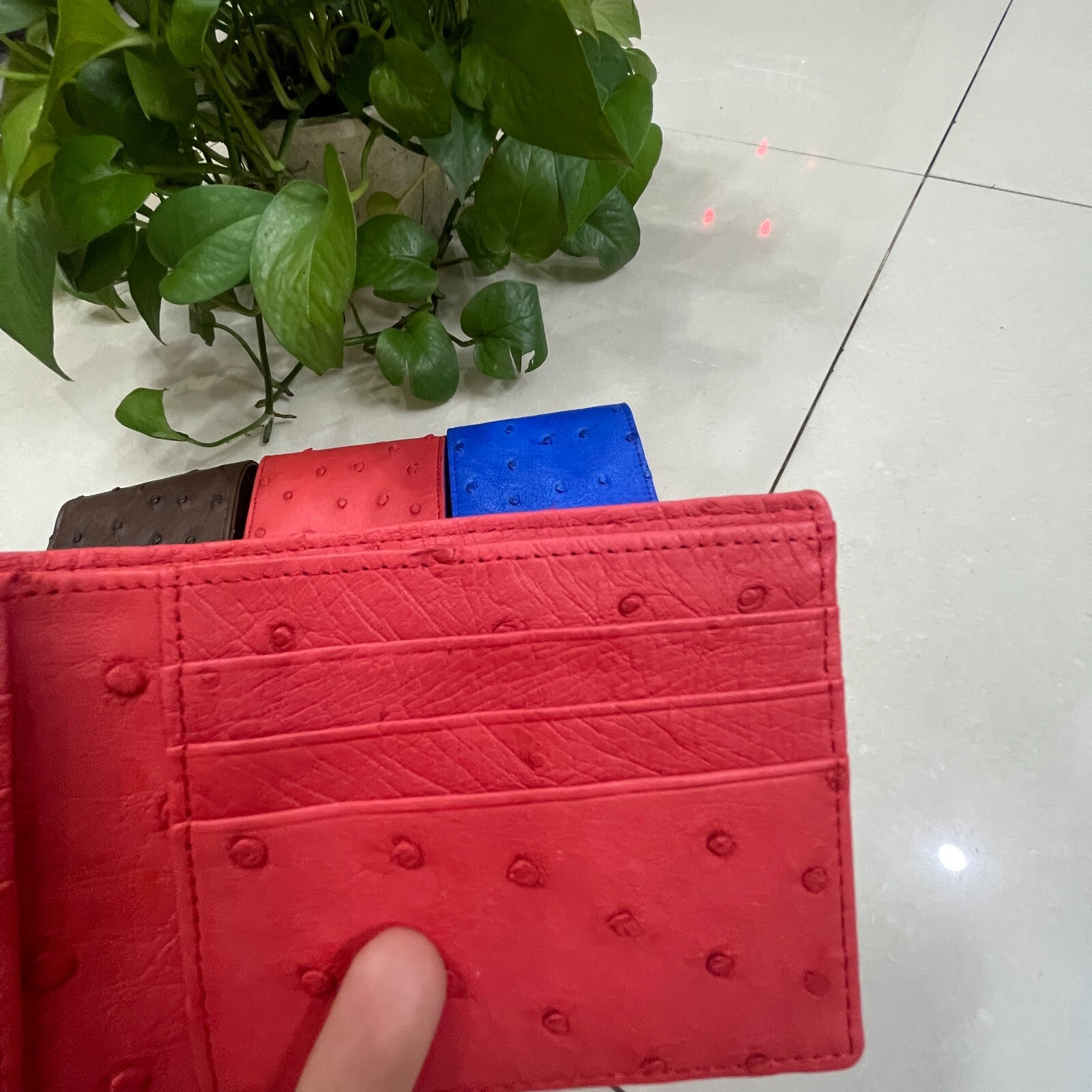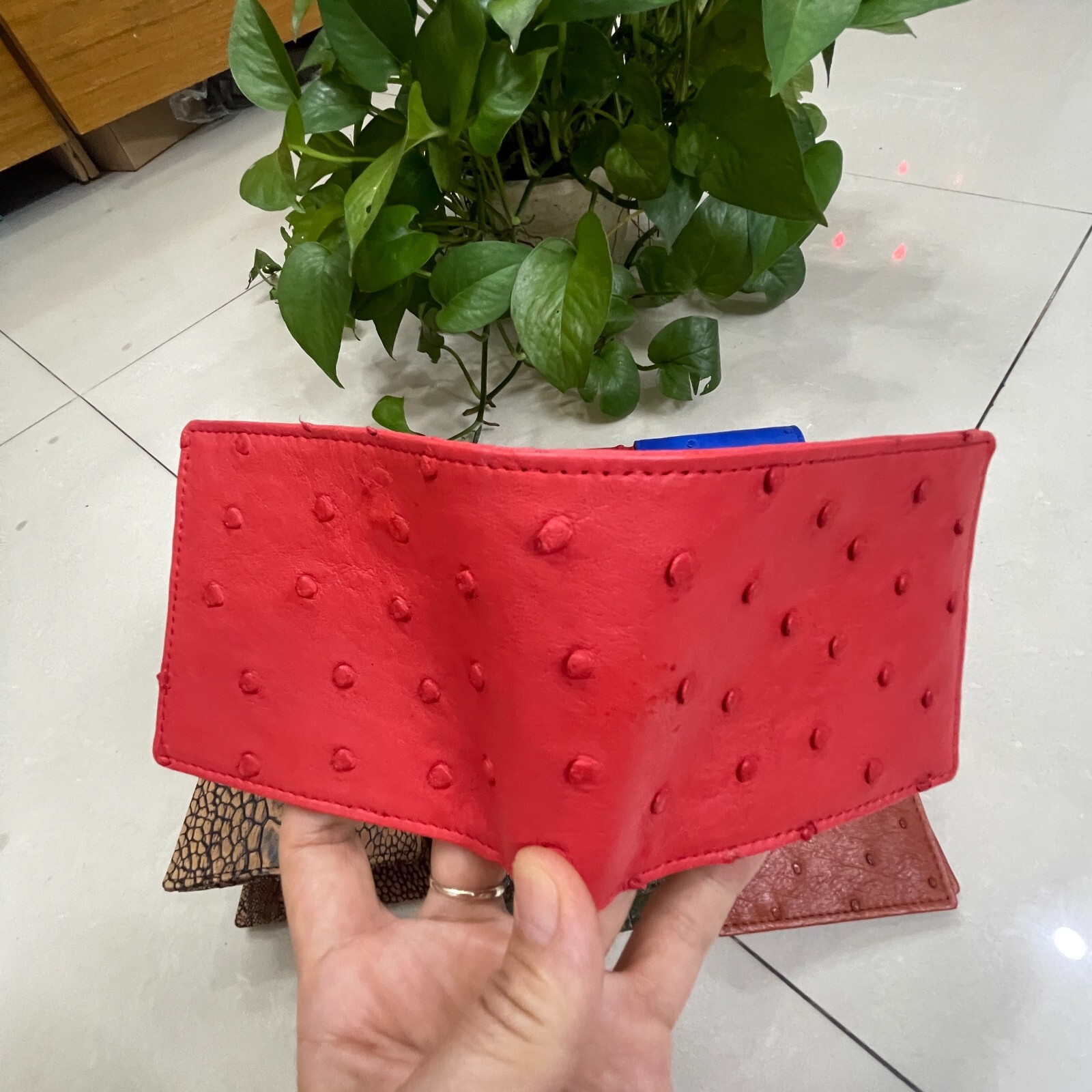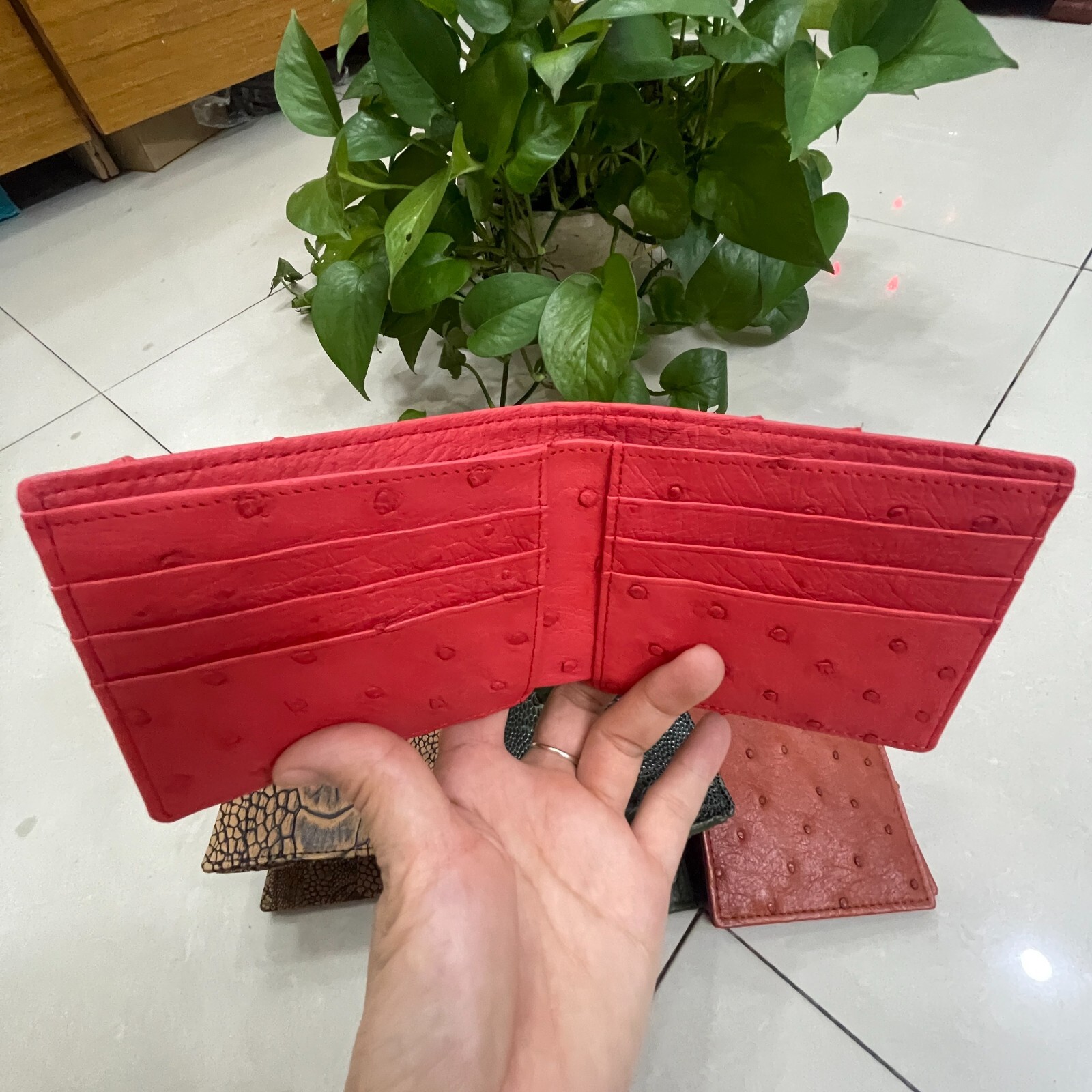 DOUBLE SIDE Genuine Ostrich Leg Leather Skin MEN'S BIFOLD WALLET, RED