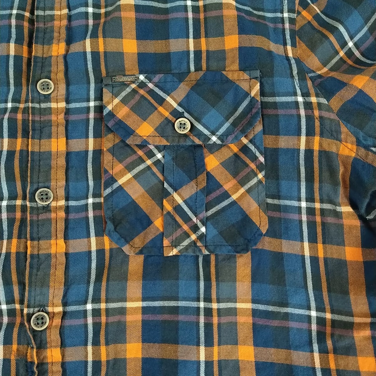 как выглядит Buffalo David Bitton Shirt Mens S Blue/Orange Plaid Flannel Hunting Camping фото
