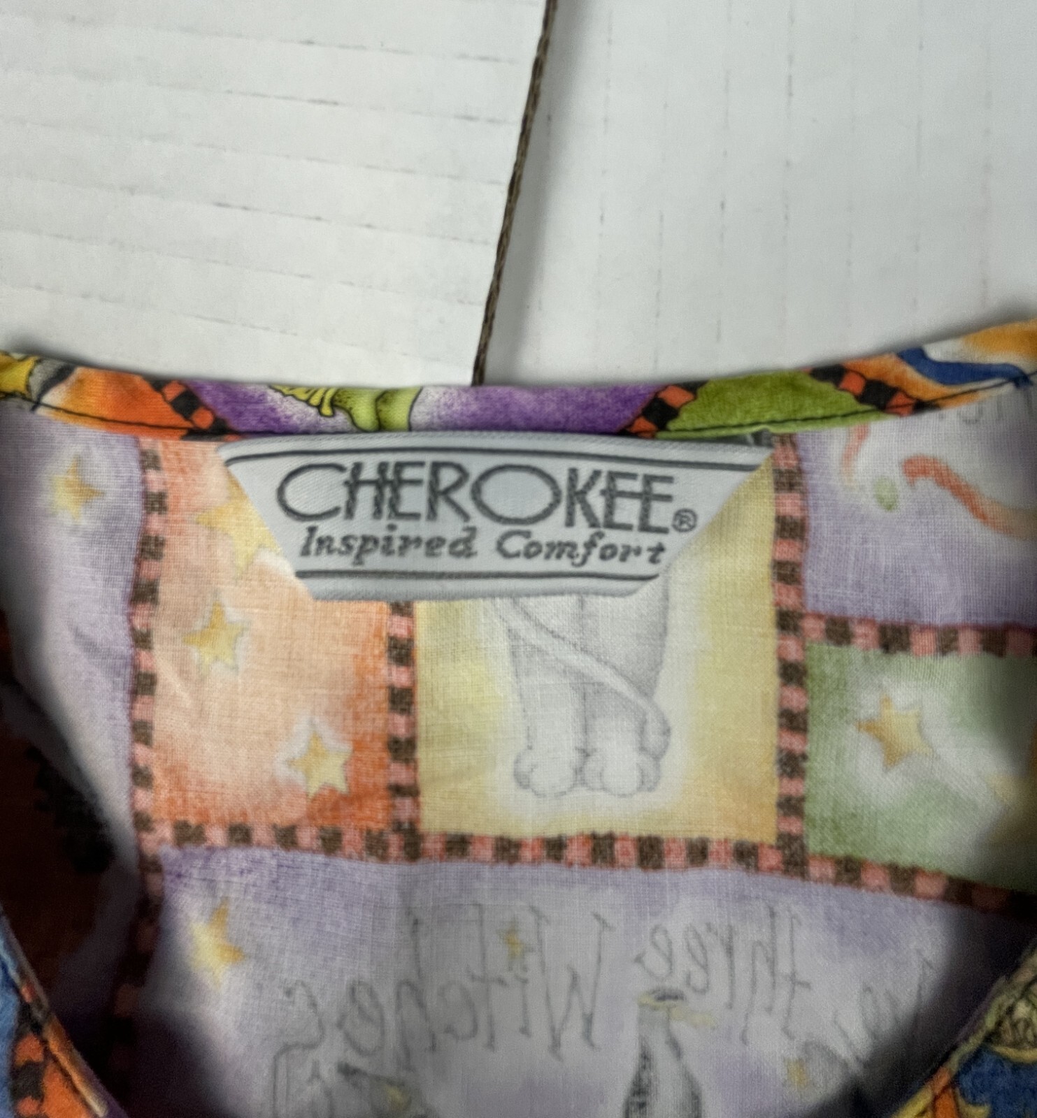 как выглядит Cherokee Womens Long Sleeve Size M Scrub Halloween Witch pumpkins Snap Buttons фото