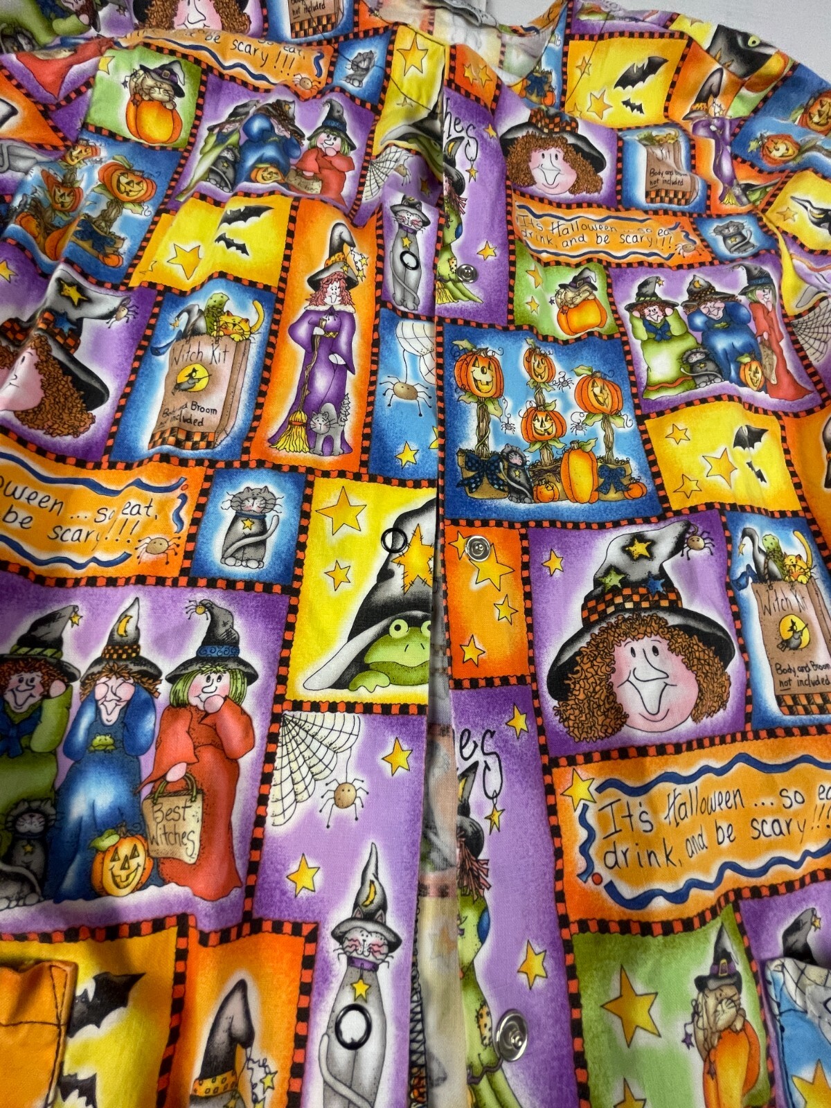 Cherokee Womens Long Sleeve Size M Scrub Halloween Witch pumpkins Snap Buttons