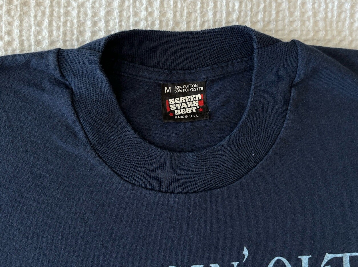 как выглядит Vintage 80s SCREEN STARS Best Mens Medium T-shirt Navy Blue Single Stitch 1986 фото