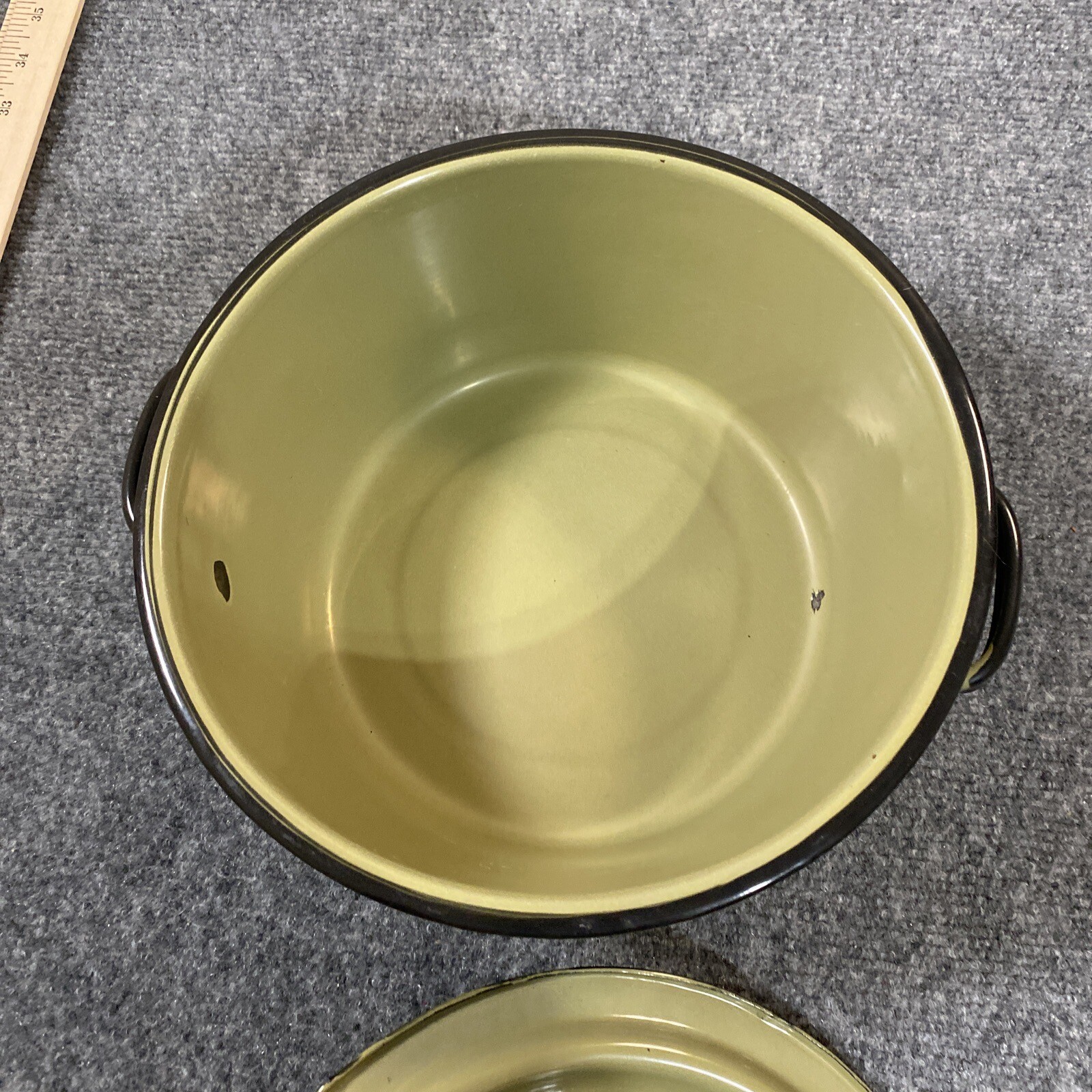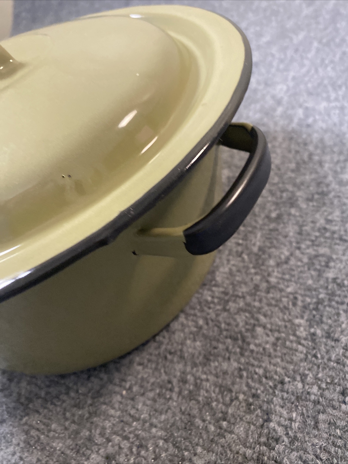 как выглядит Vintage Green and Black Enameled Steel Cooking pot with Lid Camping Camper фото
