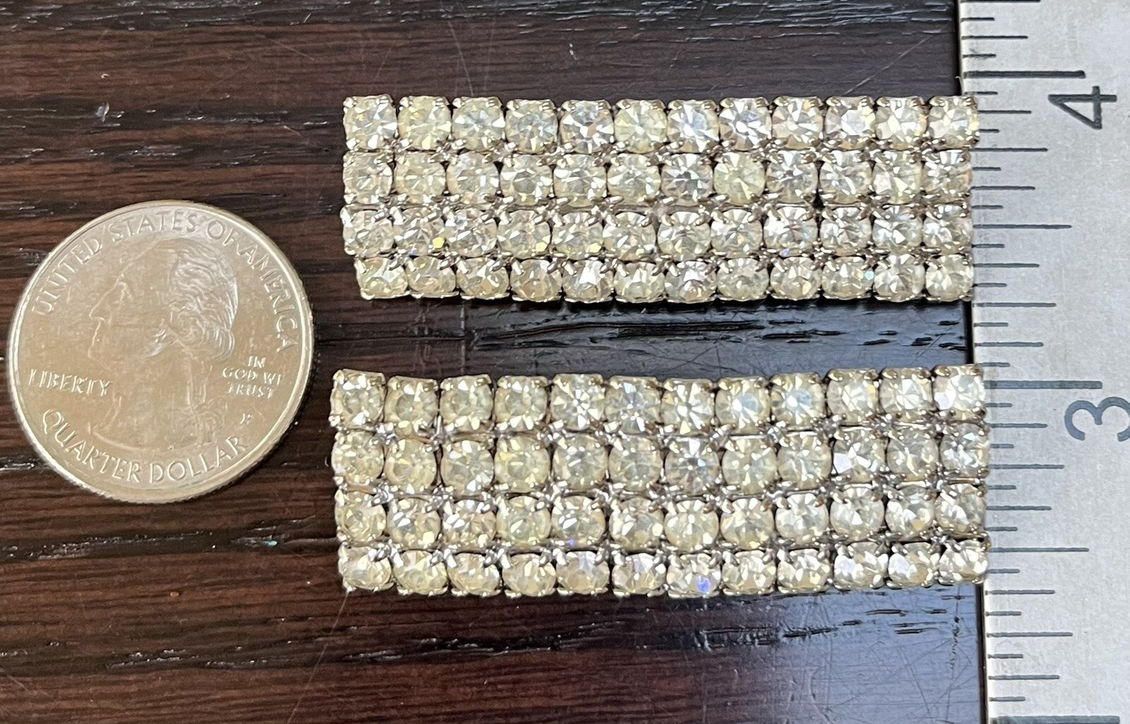 Vintage COLLECTIBLE 4 Rows SPARKLING RHINESTONE Shoe Clips DRESS UP PLAIN SHOES