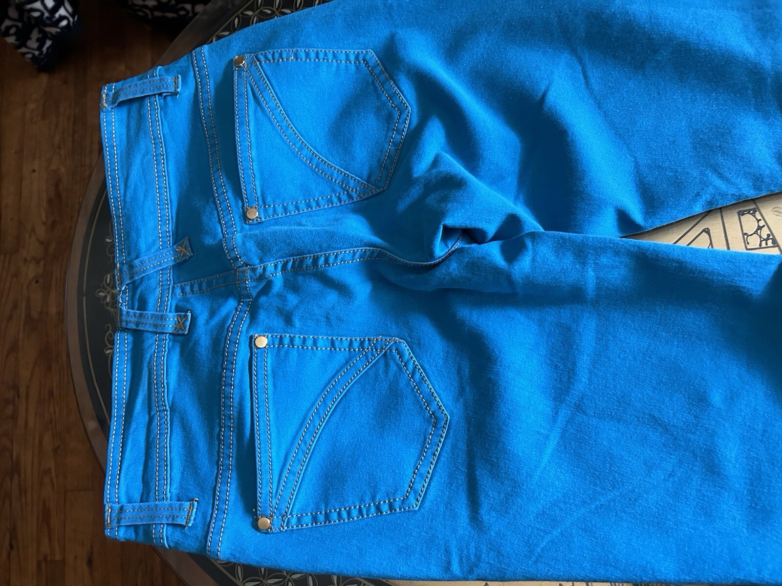 как выглядит Cache Jeans Mid Rise Bell Bottom Boot Cut Blue Turquoise WOMENS Sz 6 Y2K Vtg фото