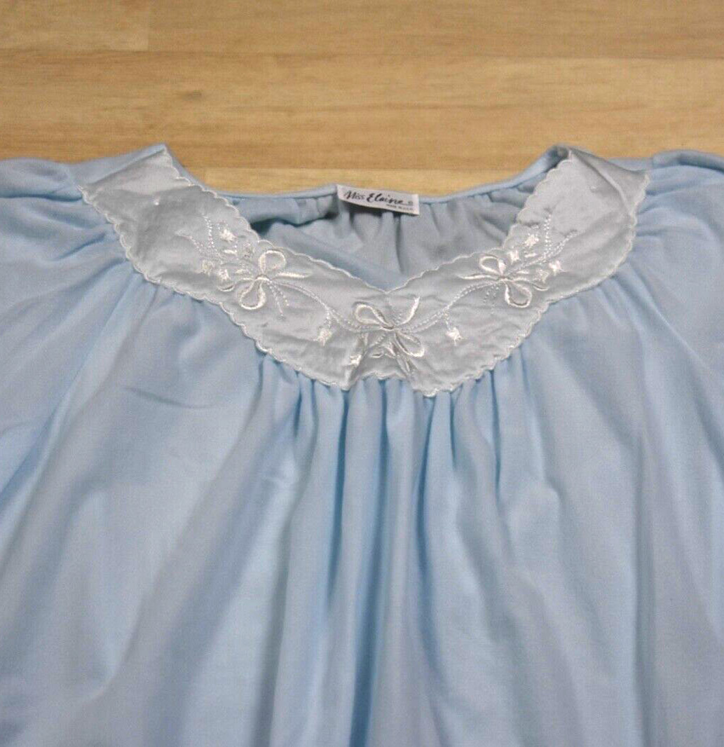 70s NWT Deadstock Miss Elaine Gauze Fleece Granny Nightgown Blue Medium VTG