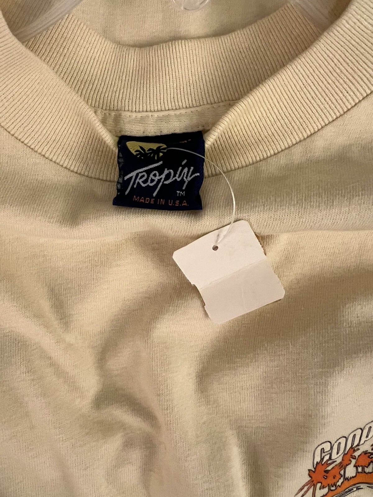 NWT Vintage Coppertone Tan Shirt Long Sleeve Medium Tropix Made in USA Palm Tree