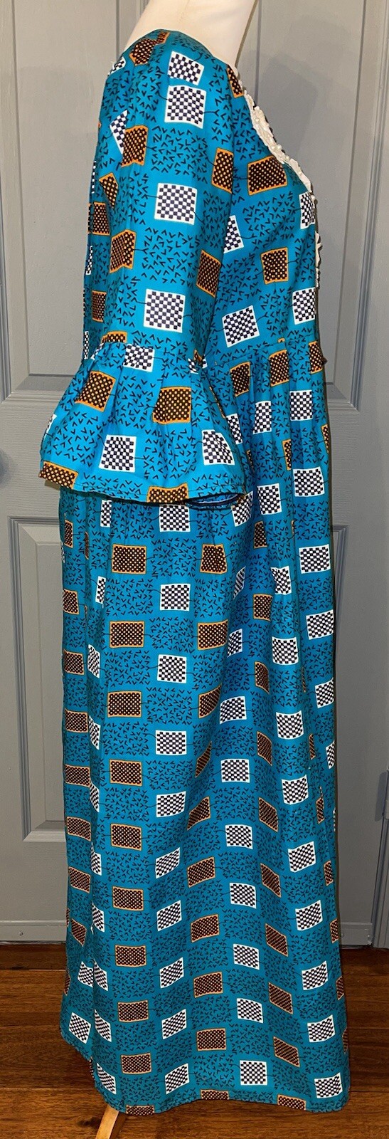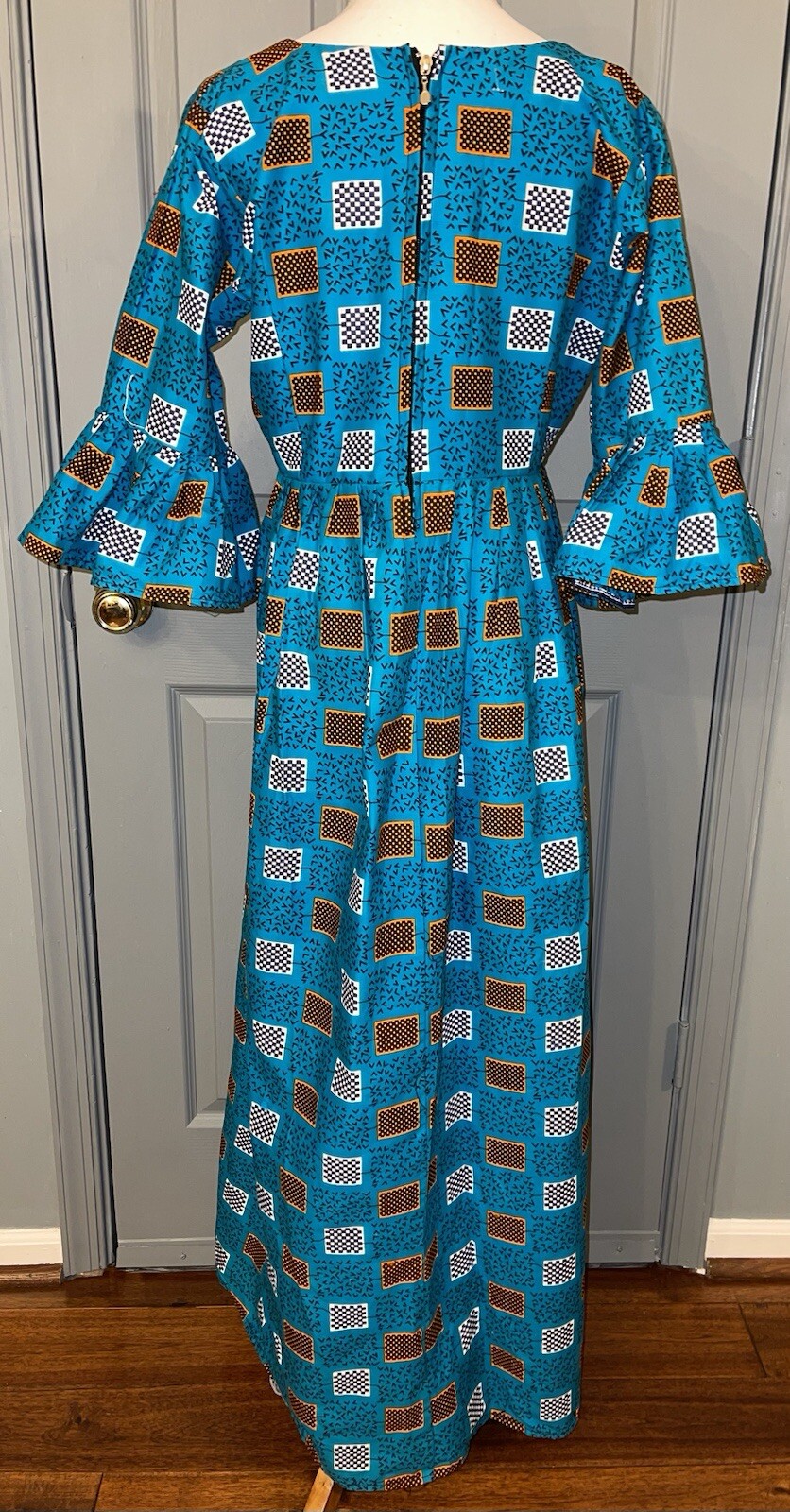 African Hand Made 100 Cotton Women s Turquoise Ruffles Long Dress.