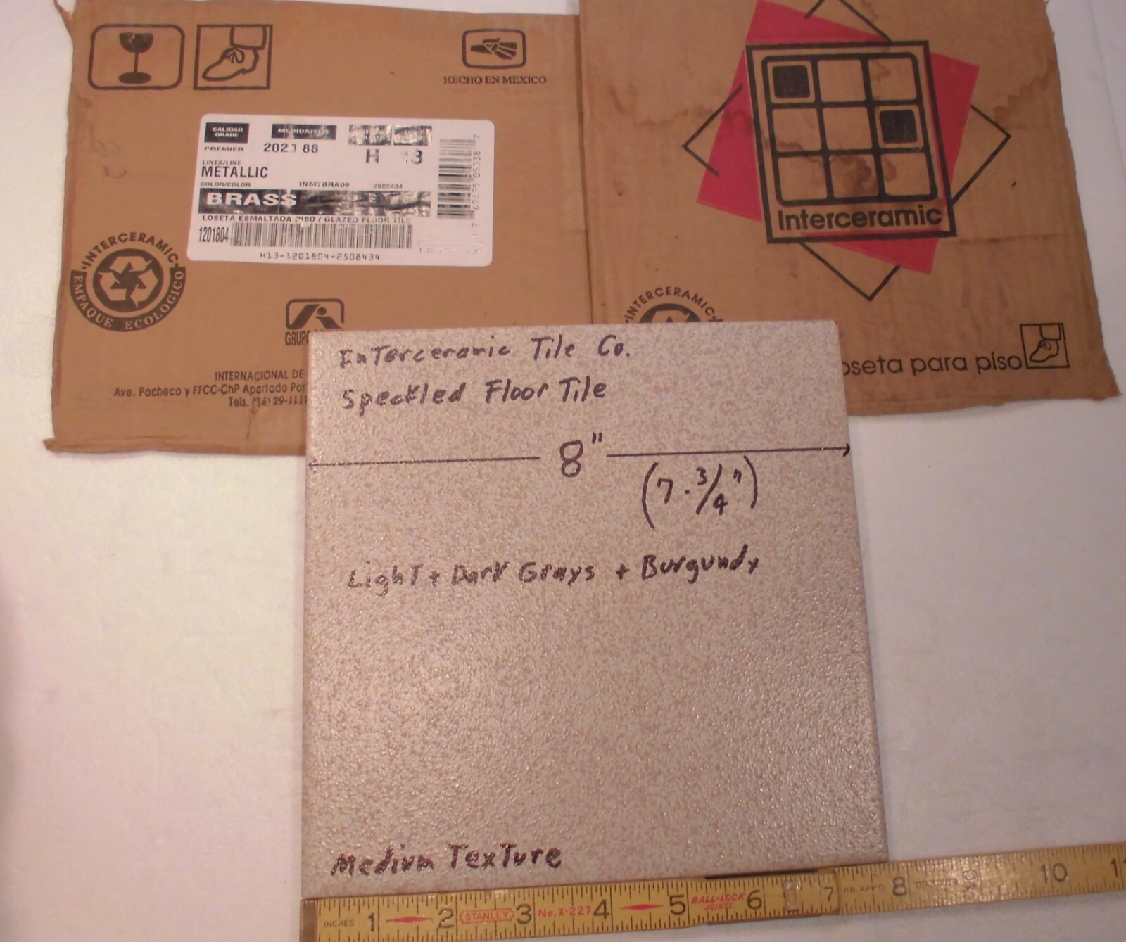 1 pc. Speckled: 7-3/4 Ceramic Floor Tile: Light Dark Grays with Burgundy, NEW