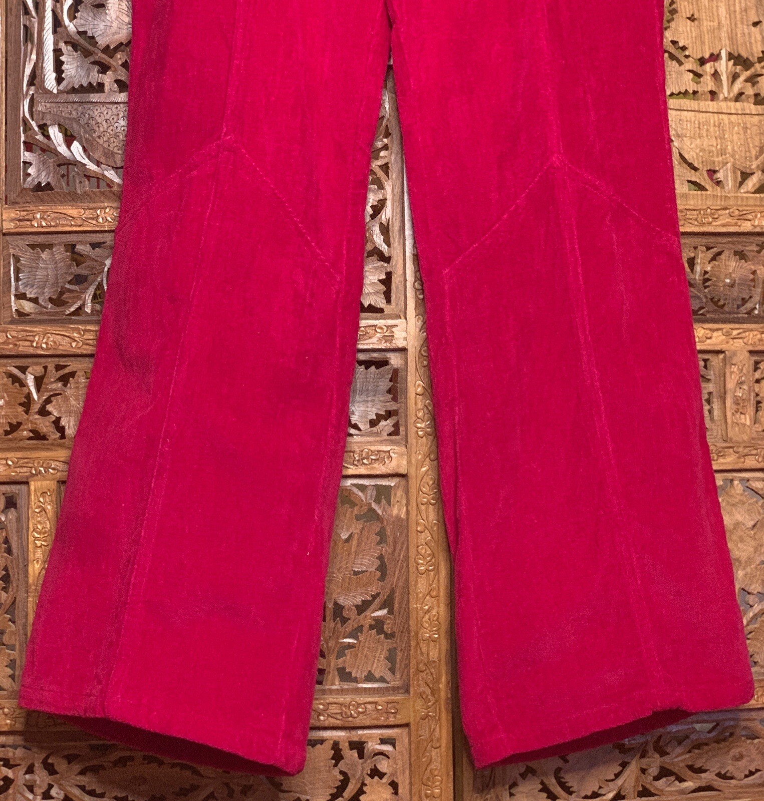 Vintage 60 s Mod Red Velvet Flare Pants Bell Bottoms Vtg