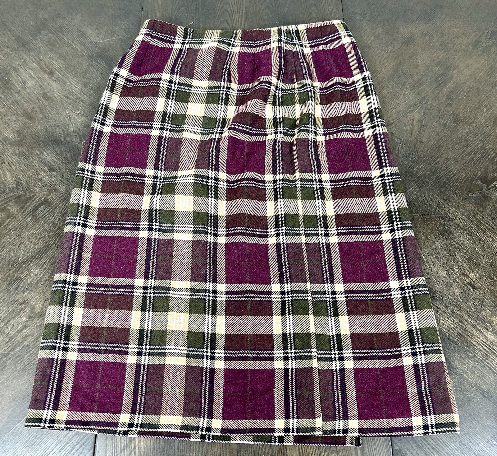 Vintage David Hollis Women's Skirt Size 14 Petite Purple Stripe Plaid Wool Blend