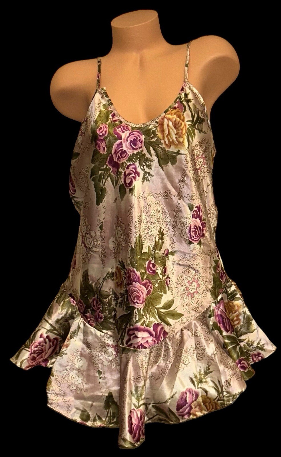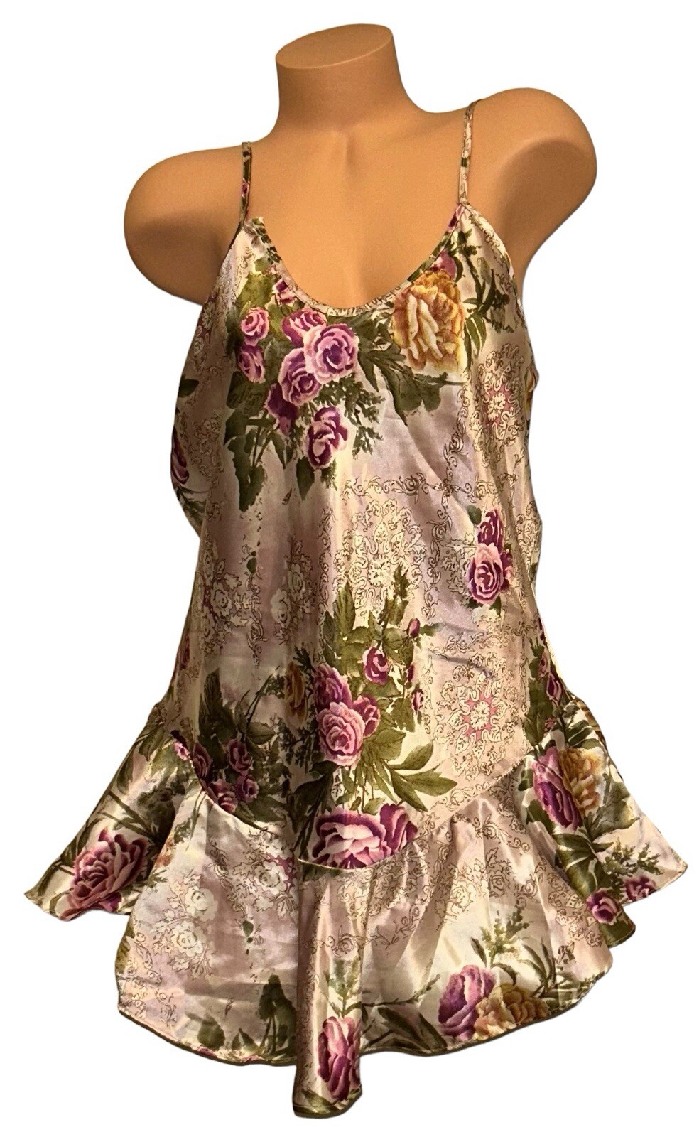 как выглядит Cinema Etoile Vintage Floral Shiny Liquid Satin Nightie Nightgown Womens фото