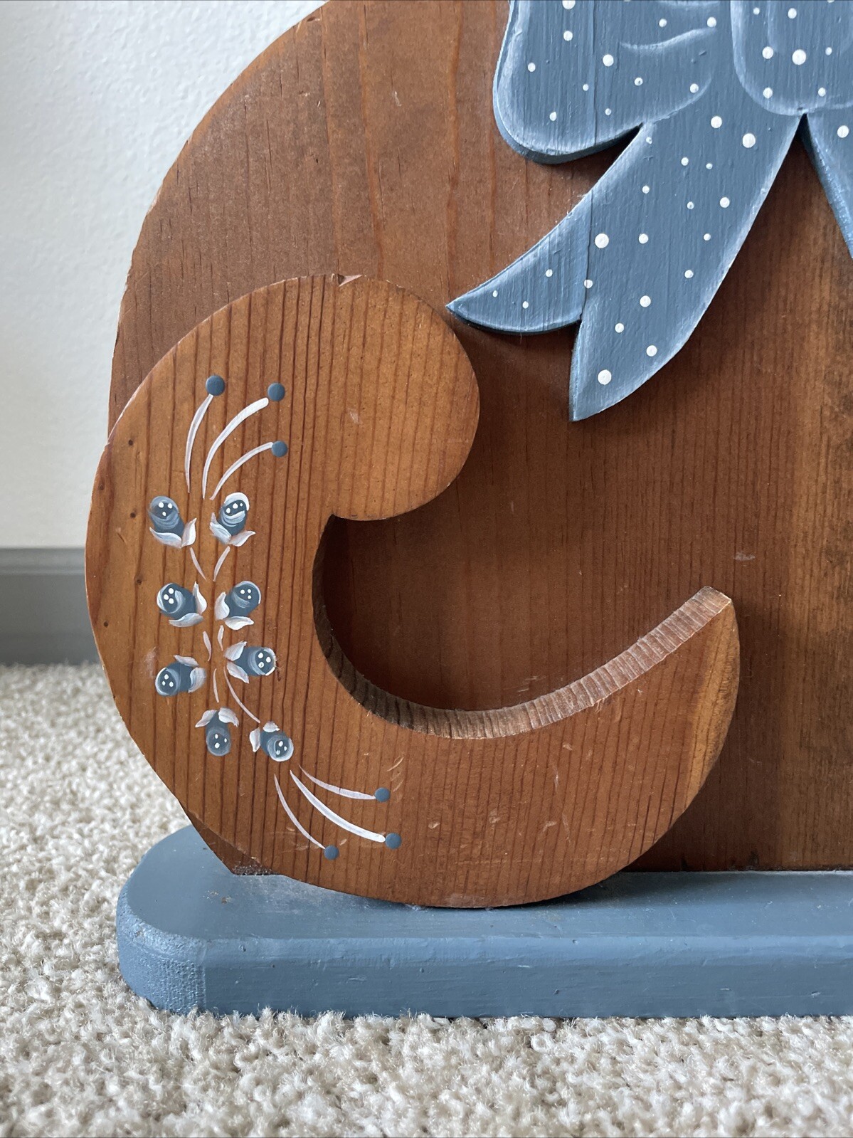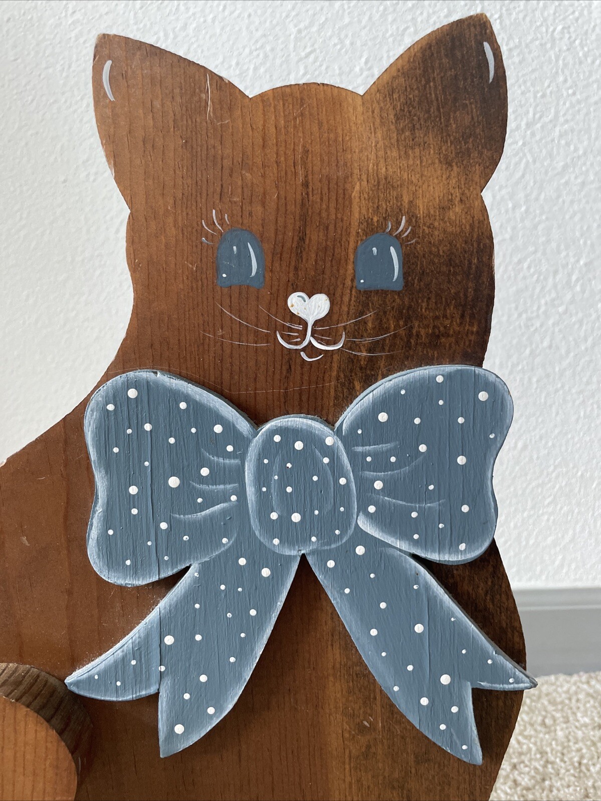 как выглядит Vintage Wooden Cat Standing Large Figure Home Decor Hand Painted Brown Blue фото