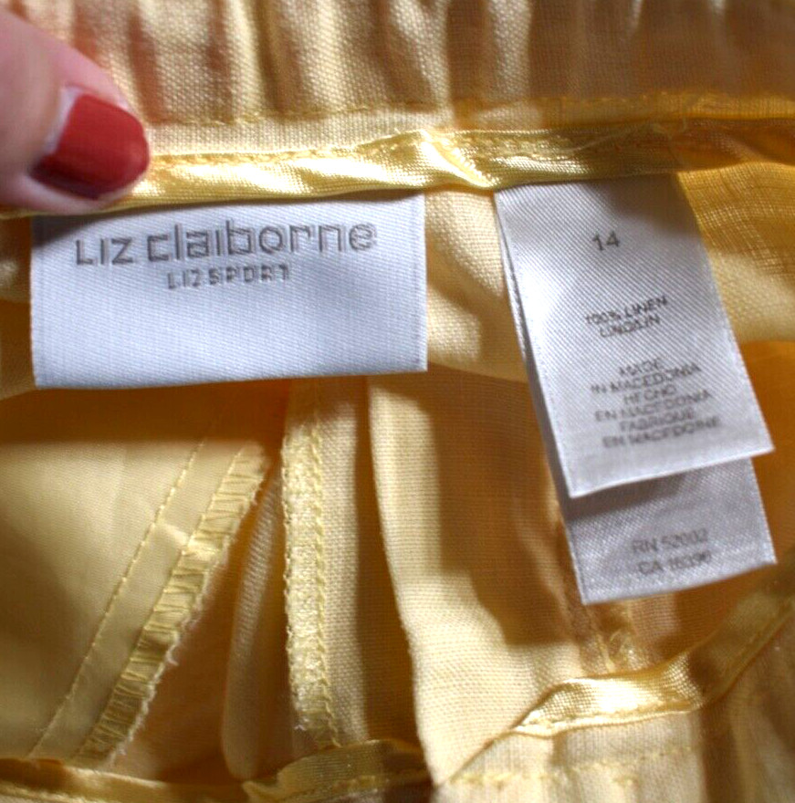как выглядит 2000s Liz Claiborne Linen Crop Ankle Pants Wide Leg Yellow Size 14 VTG фото