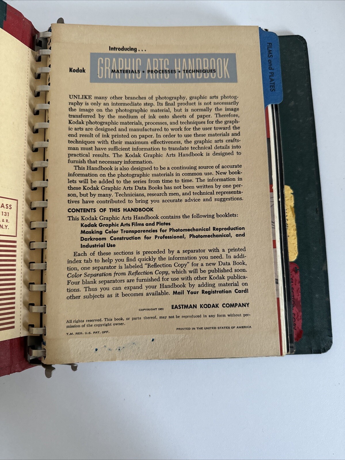 KODAK Vintage 1951 Eastman- Kodak Graphic Arts Art Photography Handbook