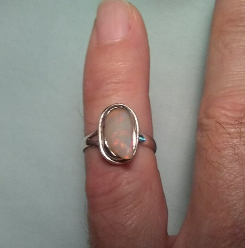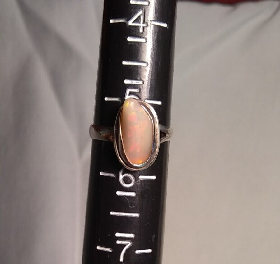 Colorful Ethiopian Welo Opal Ring 925 Sterling Silver Size 5.5 Orange Flashes