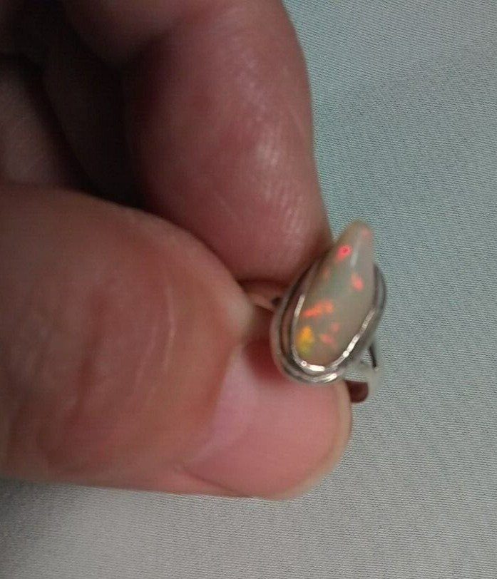 как выглядит Colorful Ethiopian Welo Opal Ring 925 Sterling Silver Size 5.5 Orange Flashes фото