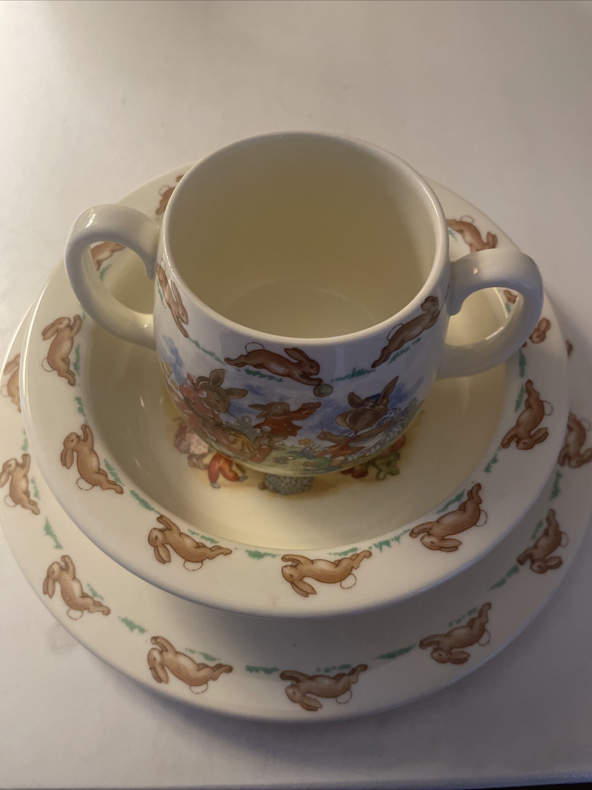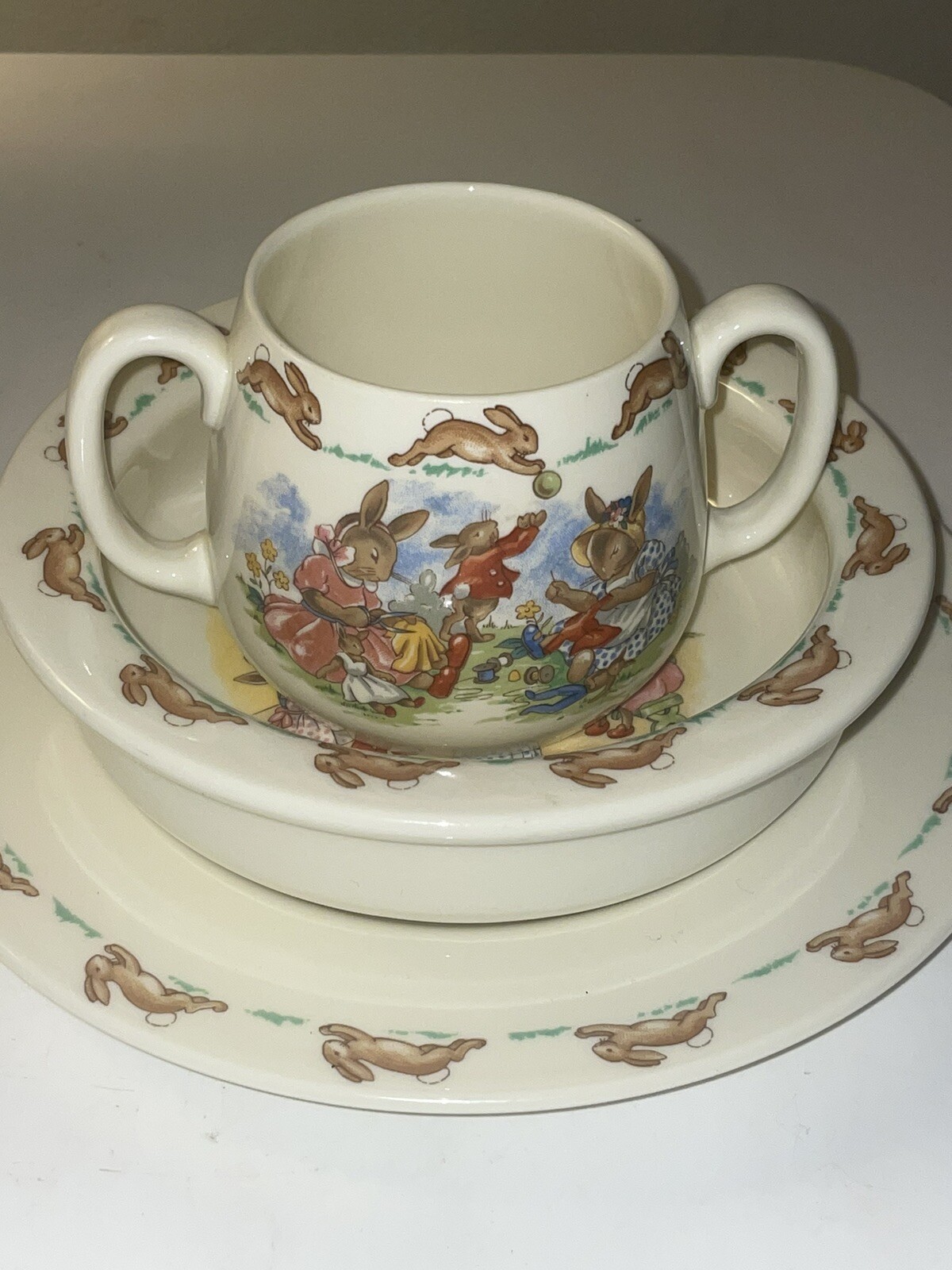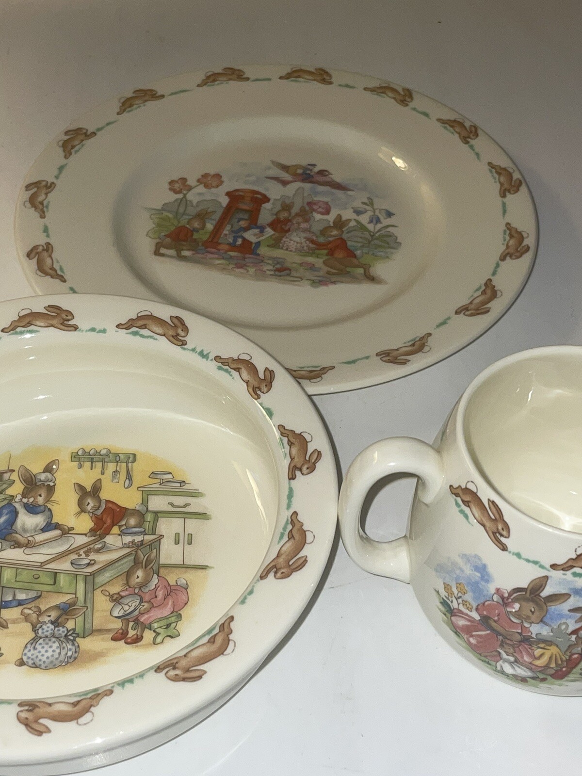 Vintage 1970s Royal Doulton Bunnykins 3 Piece Set Plate Bowl Cup NWOT