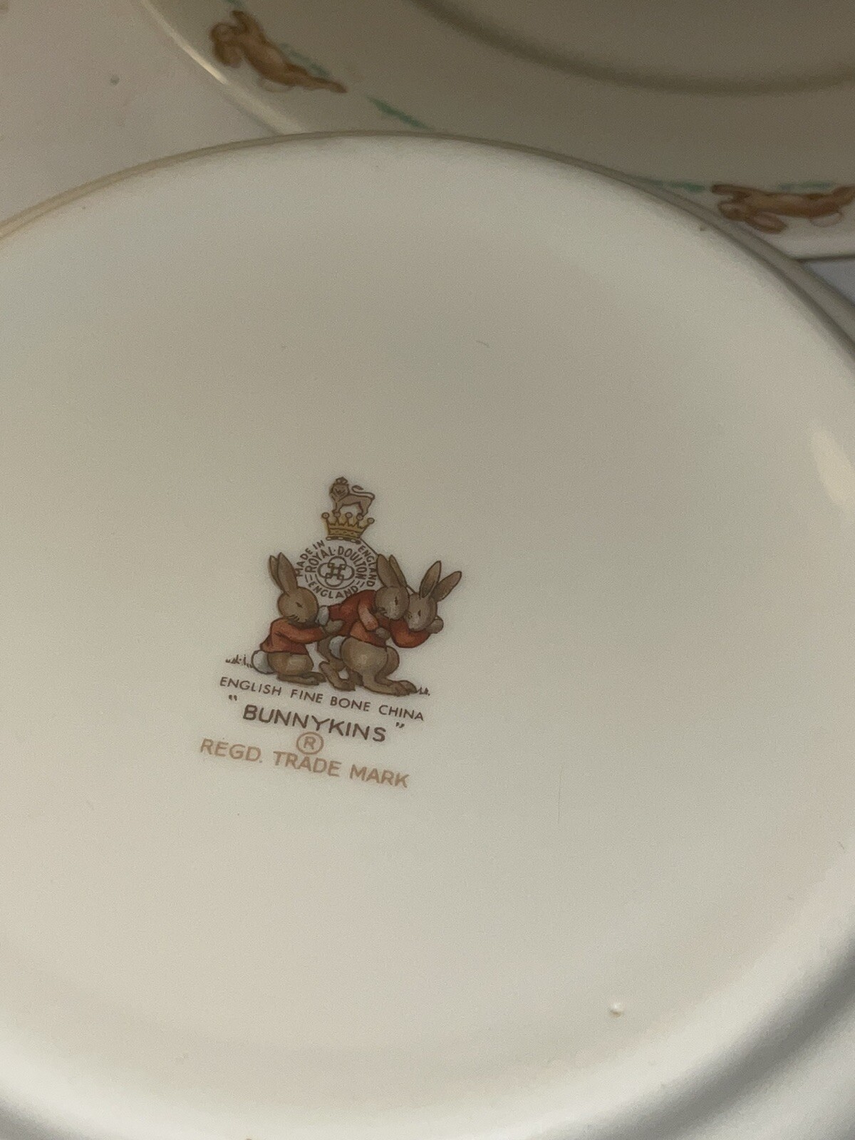 как выглядит Vintage 1970s Royal Doulton Bunnykins 3 Piece Set Plate Bowl Cup NWOT фото