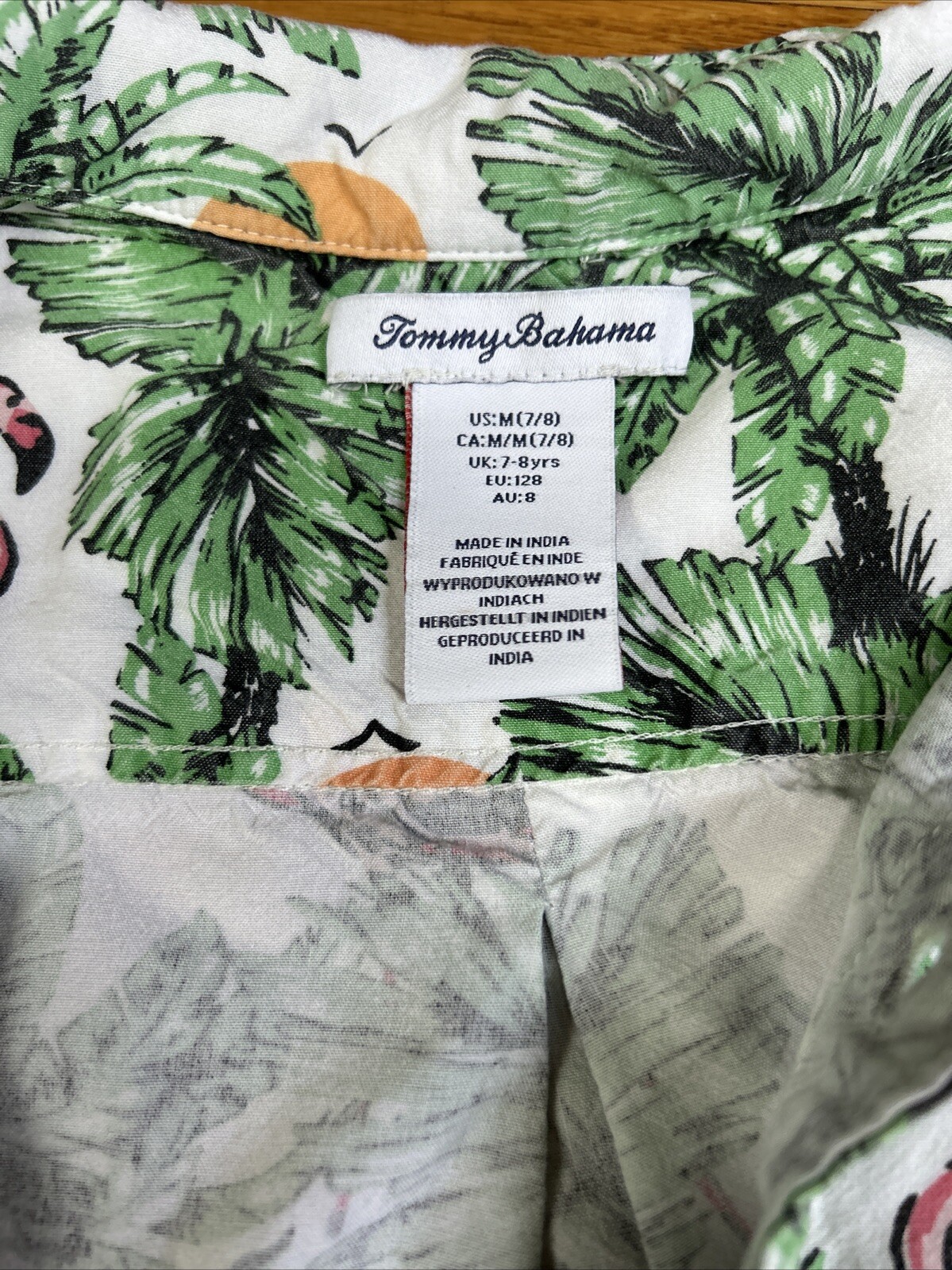 как выглядит Tommy Bahama Hawaiian Shirt Kids Med Button Down Floral Flamingos фото