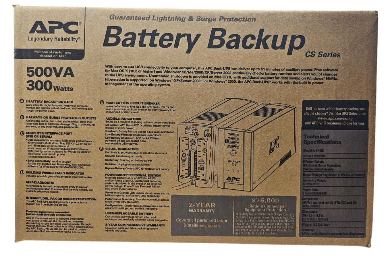 New/Old Stock - APC Back-UPS CS-500 Uninterruptible Pwr Supply Black 300W 500VA