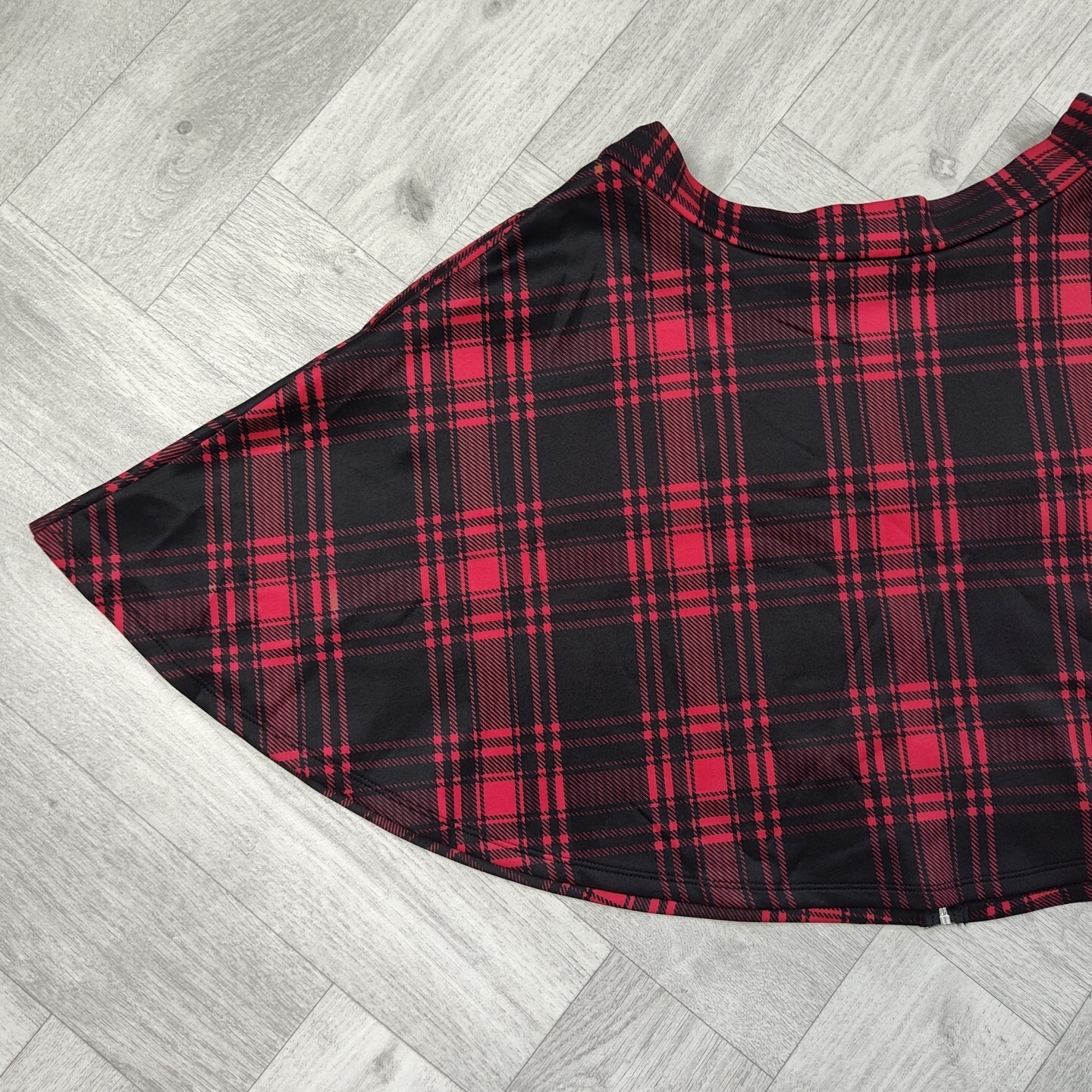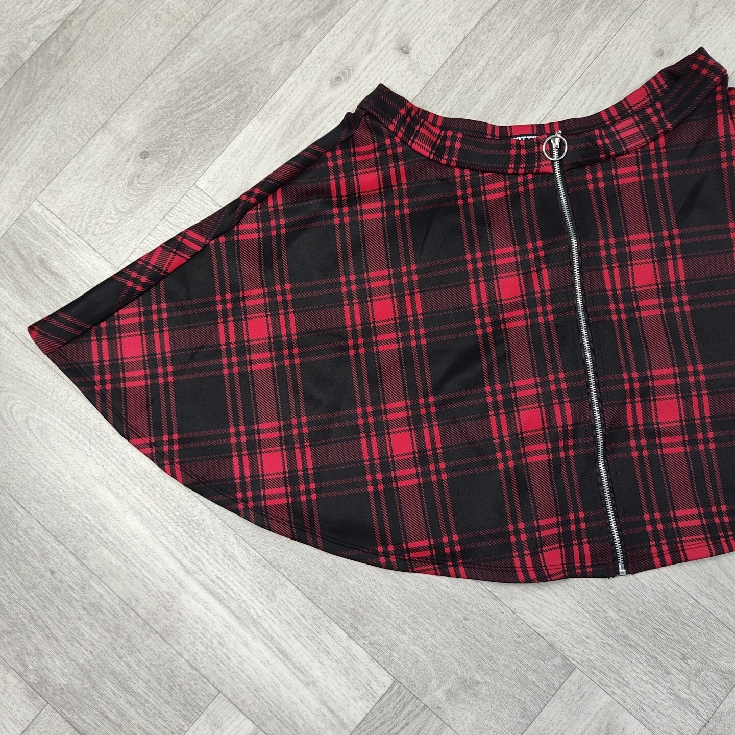 как выглядит Hot Topic Size Large Goth Red Black Plaid Skater Skirt O Ring Zipper-Pockets фото