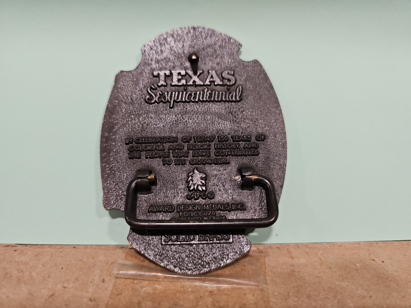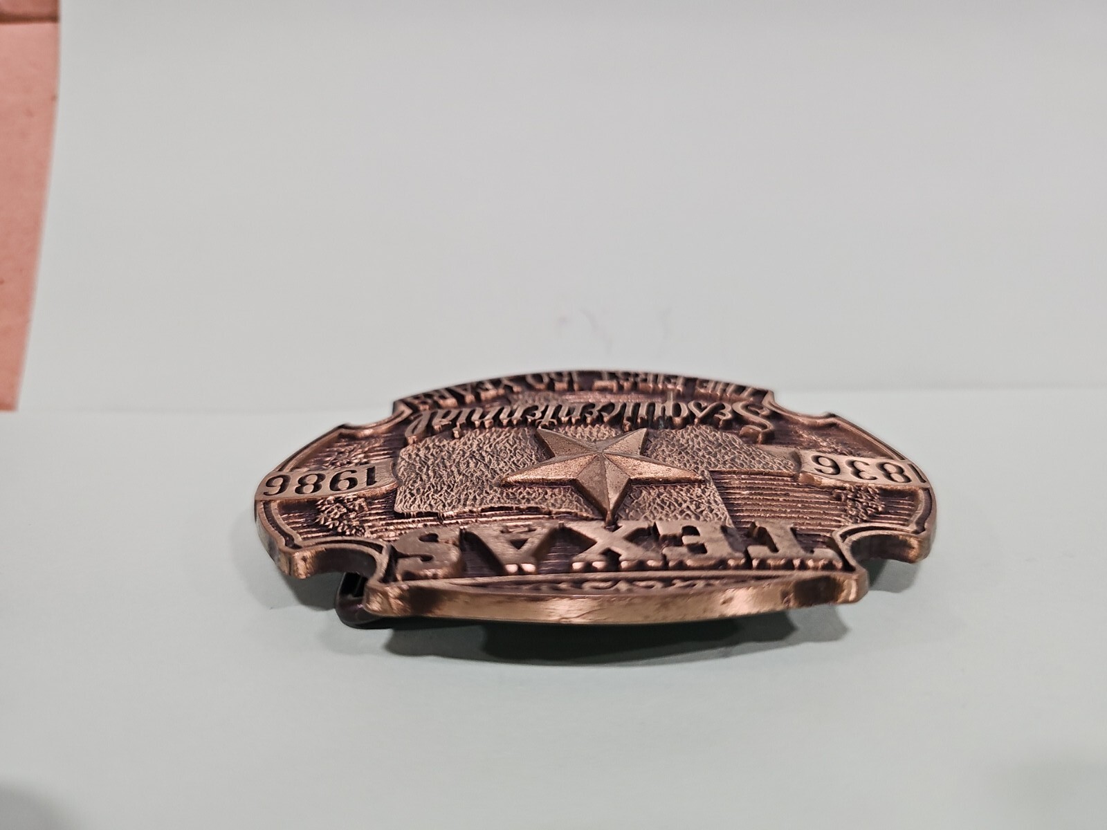 как выглядит Texas Sesquicentennial Brass Belt Buckle 1836-1986 150 Years фото