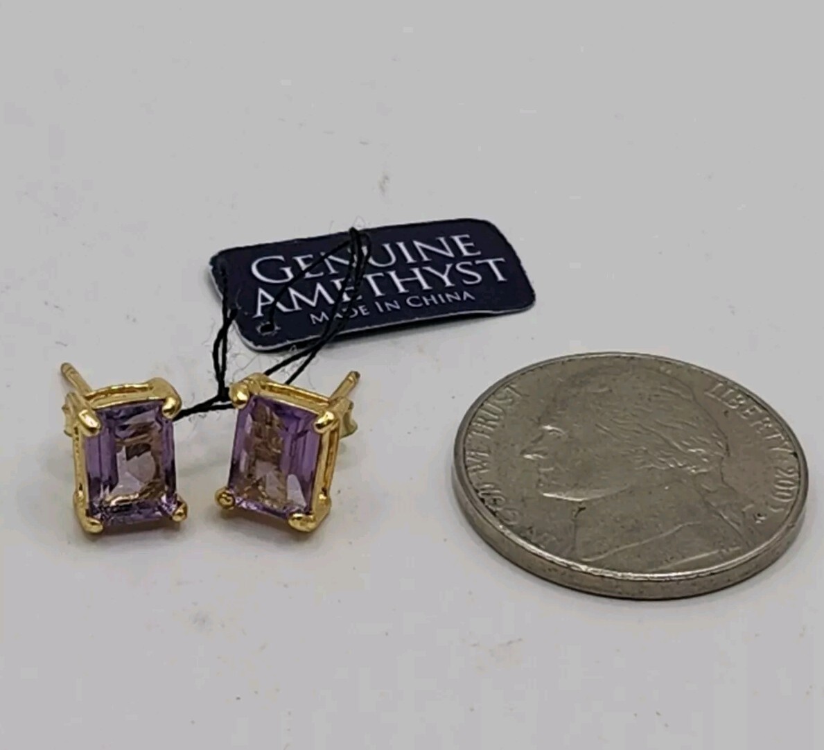 Genuine Amethyst Pierced Earrings Sterling Silver 14kt Gold Overlay