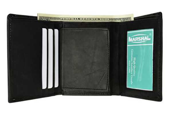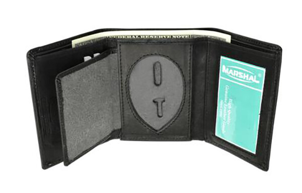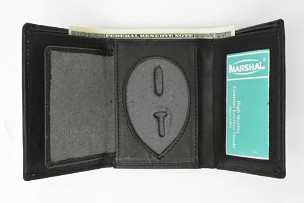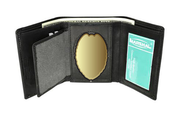 Black Leather Men's Conceal Carry Badge Wallet License Oval Shield Holder