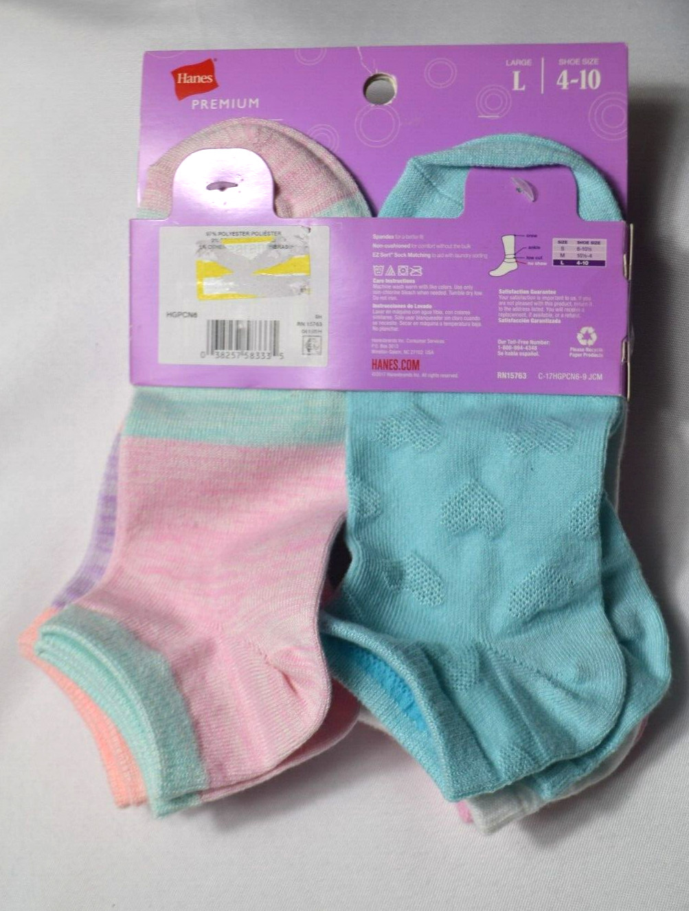 как выглядит Hanes Girls No Show Socks 6 Pairs Large - Shoe Size 4-10 - NEW фото