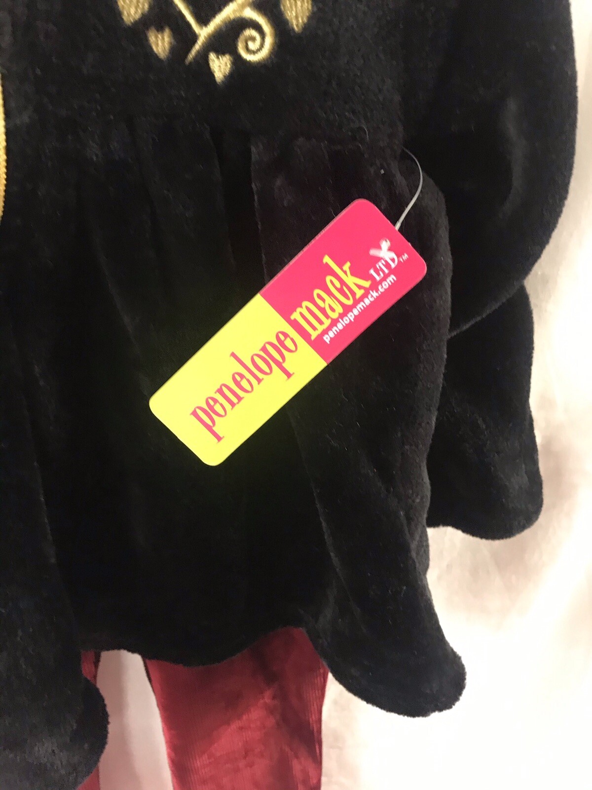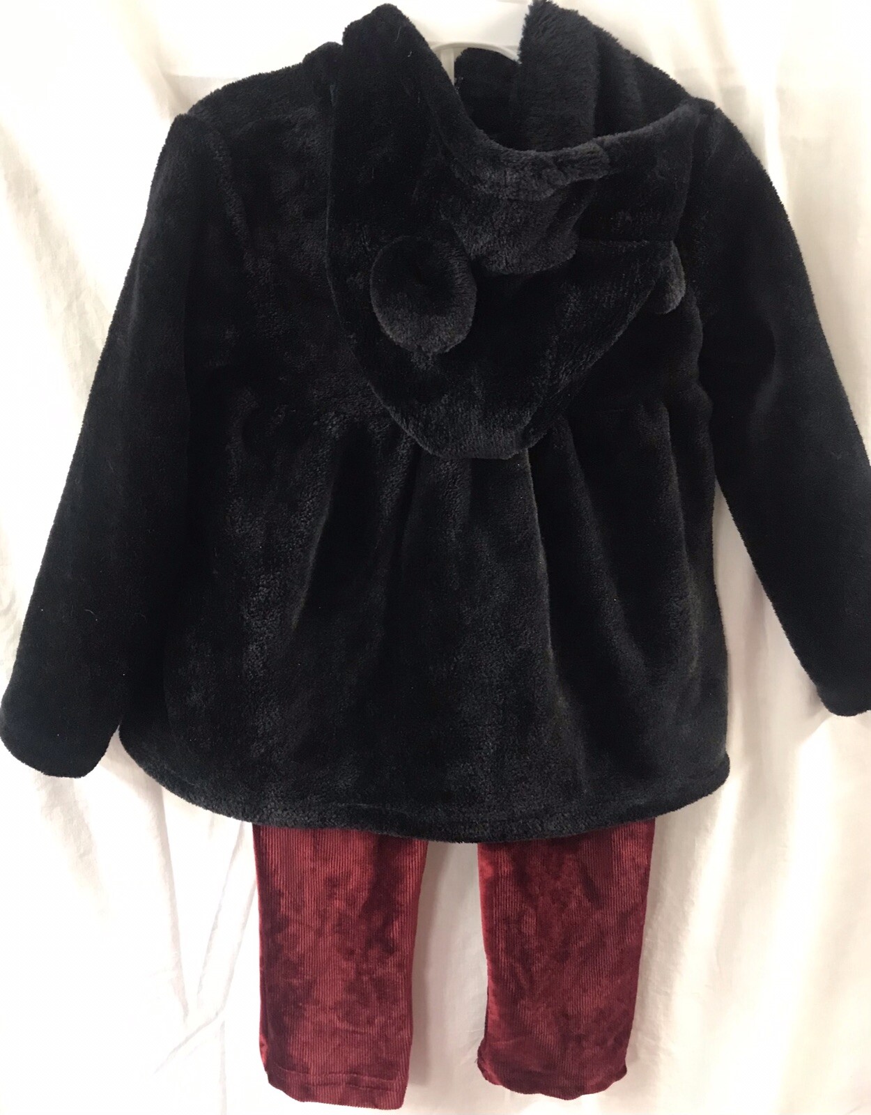 Penelope Mack Size 3T Faux Fur Jacket Black Burgundy Pants Hood W/ Ears NWT