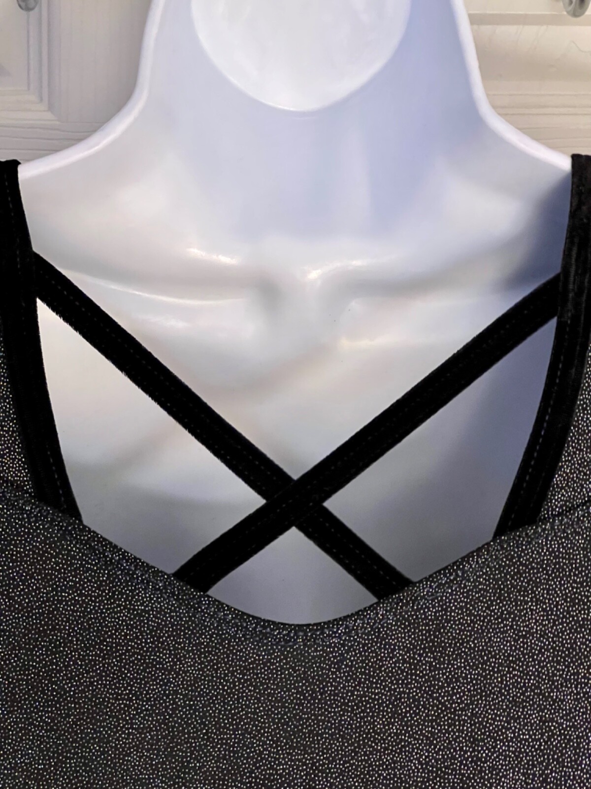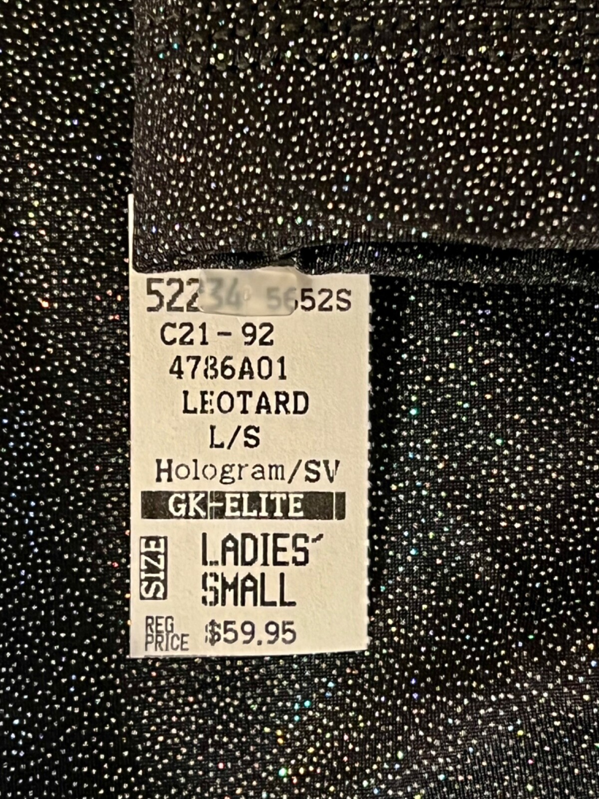 GK LgSLV BLACK TWILIGHT FOIL ADULT SMALL BLACK VELVET GYMNASTS DANCE LEOTARD AS