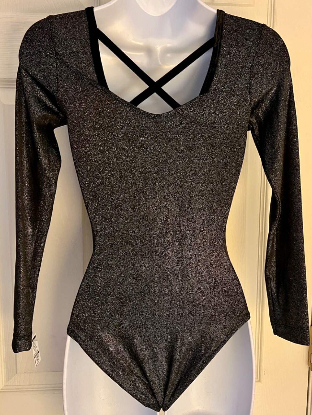 как выглядит GK LgSLV BLACK TWILIGHT FOIL ADULT SMALL BLACK VELVET GYMNASTS DANCE LEOTARD AS фото