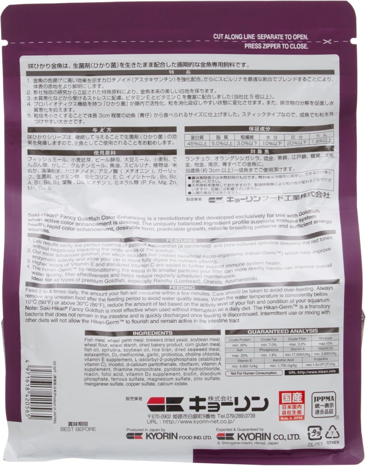 Saki hikari fancy goldfish sinking pellet baby stick color enhancing 1000g