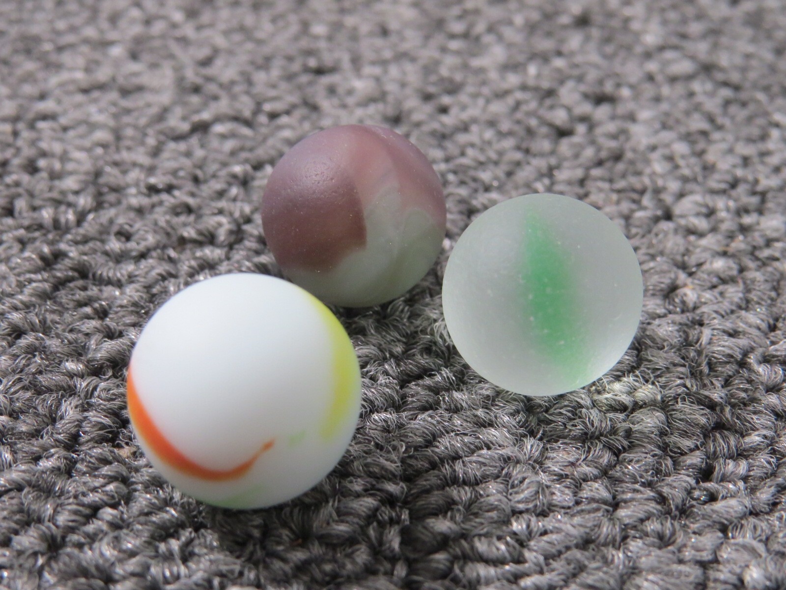 как выглядит 3 Genuine Sea Glass Surf Tumbled Frosted Marble Purple White Green Swirl фото