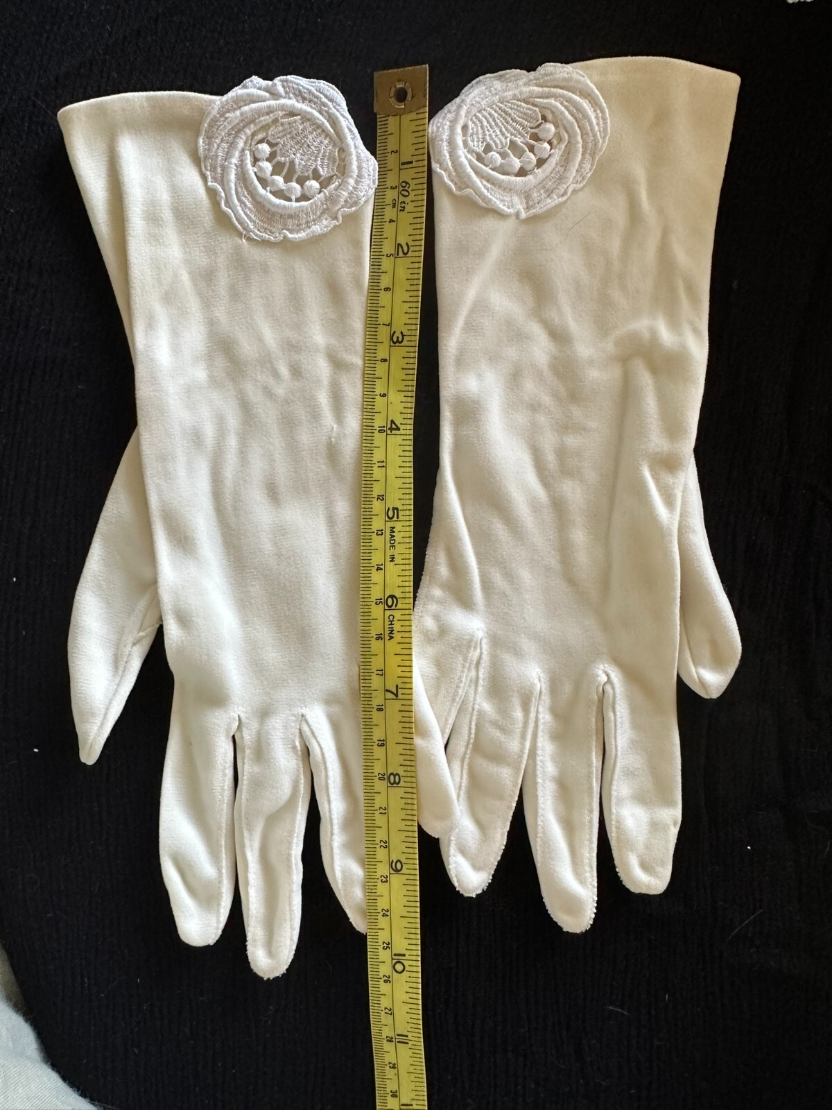 как выглядит Vtg 60s Short White Womens Gloves 10" Lace Accents Medium Costume Cosplay фото