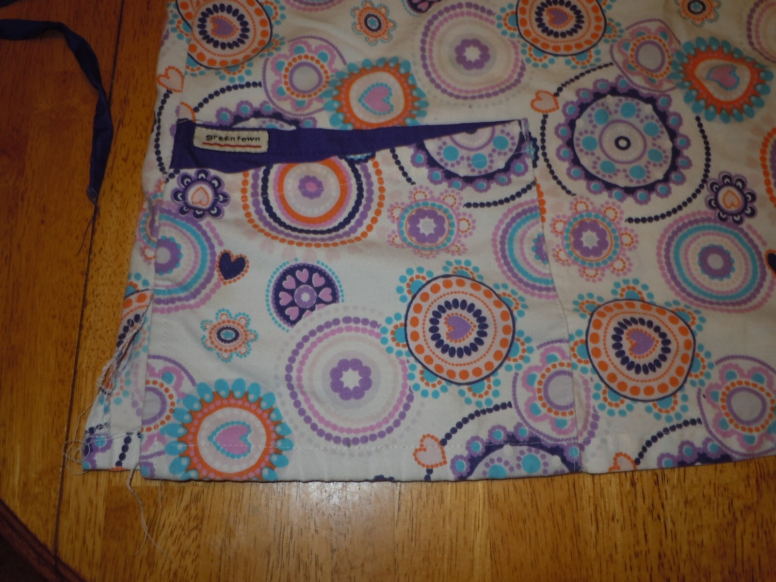 как выглядит GREEN TOWN SCRUB TOP WOMENS HEARTS CIRCLES GROOVY ORANGE PURPLE BLUE фото