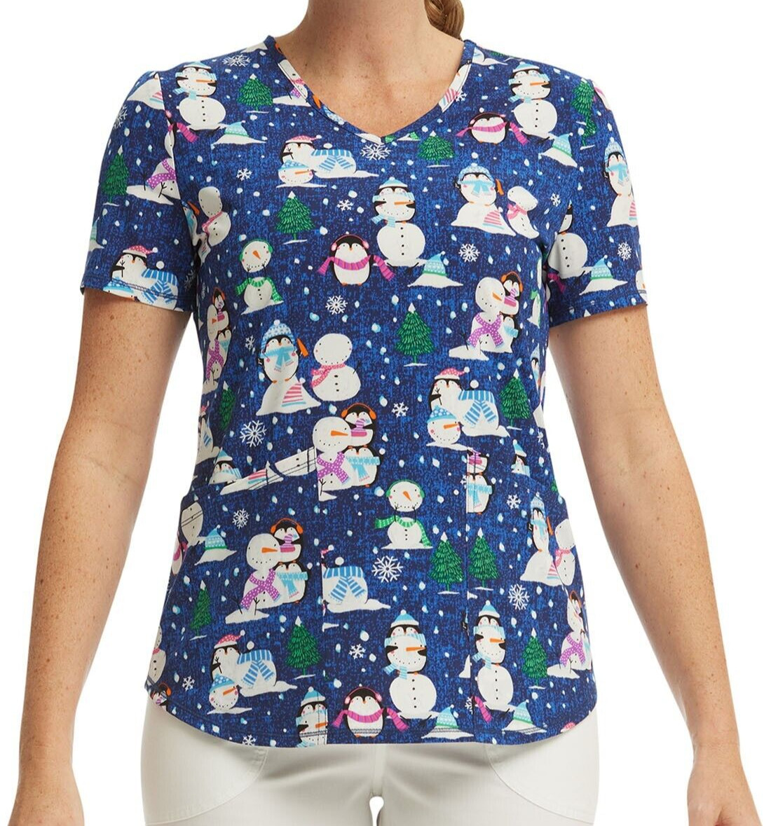 Scrubstar Penguin Playtime Blue Scrub Top Size Small