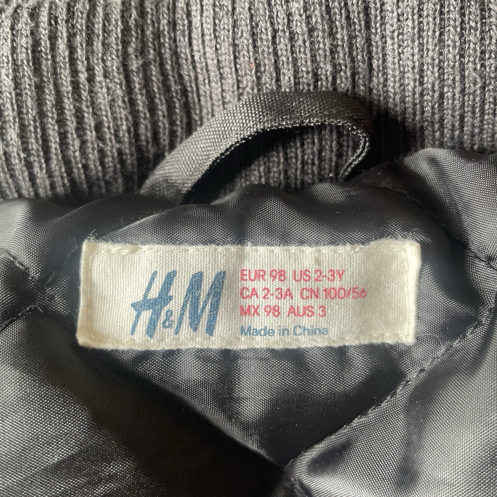 H M Jacket Boys 2-3 Yrs Black Removable Hooded Puff Bomber Coat Pockets Youth
