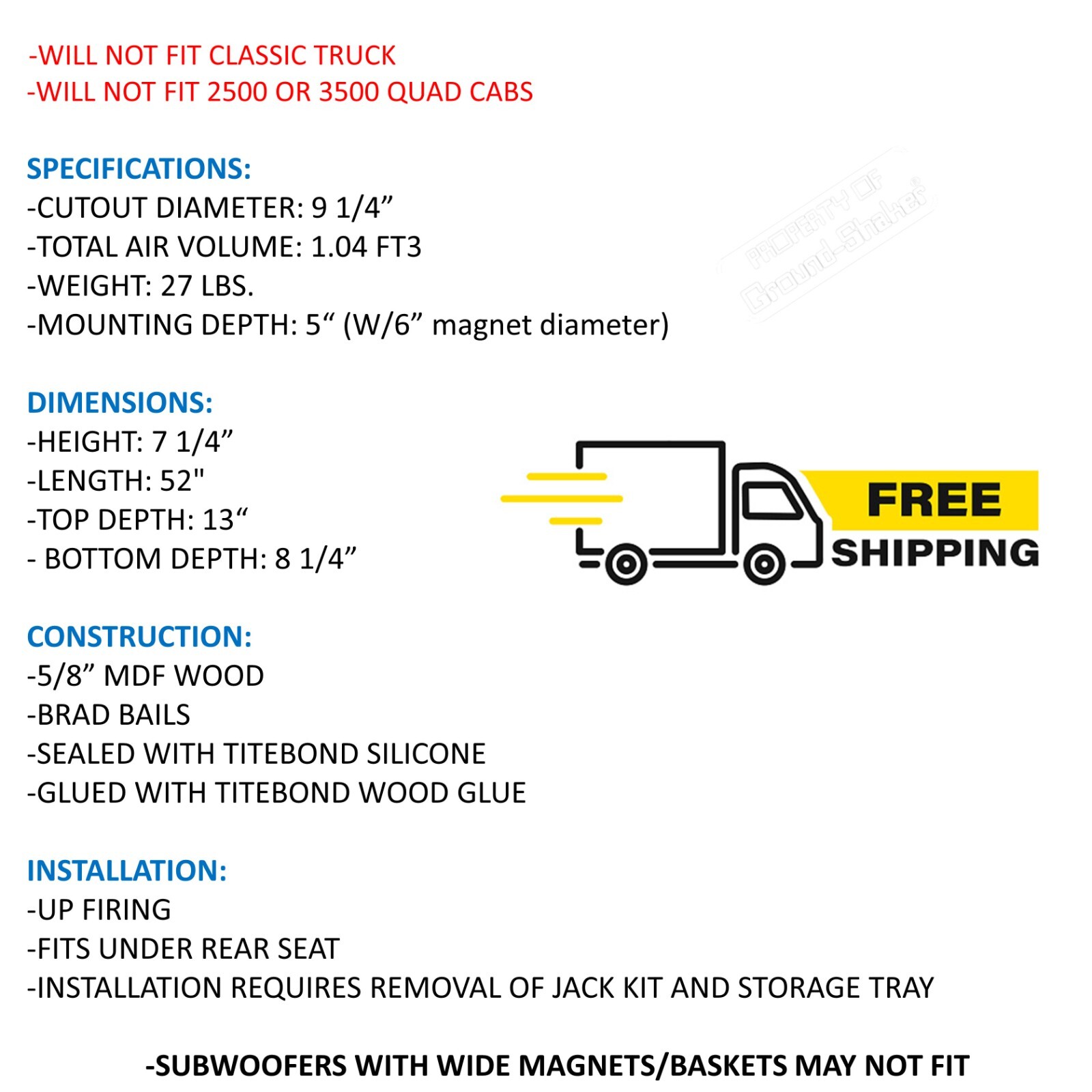 Fits 2021 Dodge Ram Quad Cab 10 Dual Sealed Sub Box Subwoofer Enclosure
