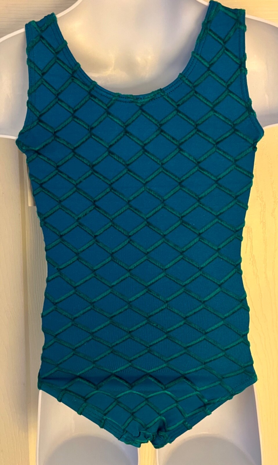 как выглядит GK JACQUARD VELVET CHILD X-SMALL DK GREEN DIAMOND GYMNASTIC TANK LEOTARD SZ XS фото
