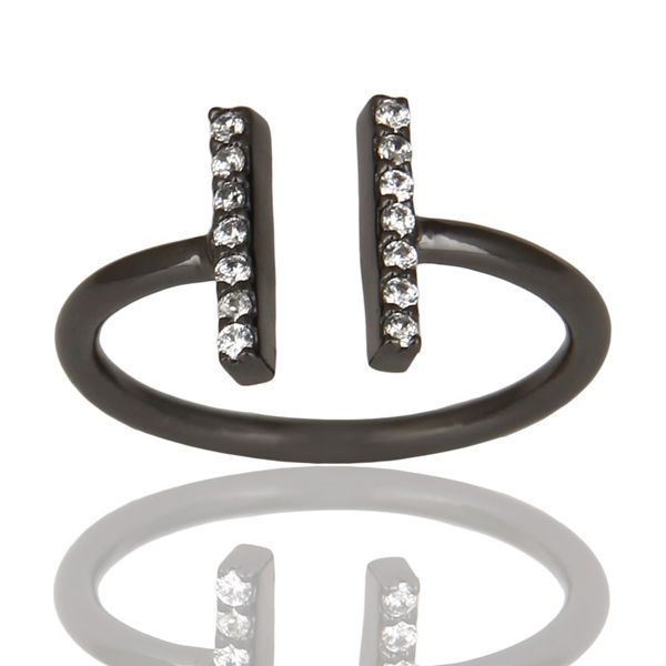 Handmade Studded Parallel Design Black Rhodium 92.5 Silver Ring CZ Jewelry