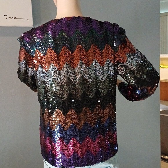 как выглядит Coppola Shop VTG 70s sequin zig zag open cardigan jacket Disco S M Halloween фото