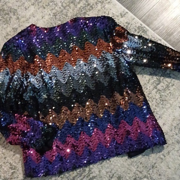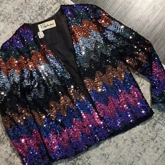 Coppola Shop VTG 70's sequin zig zag open cardigan jacket Disco S M Halloween