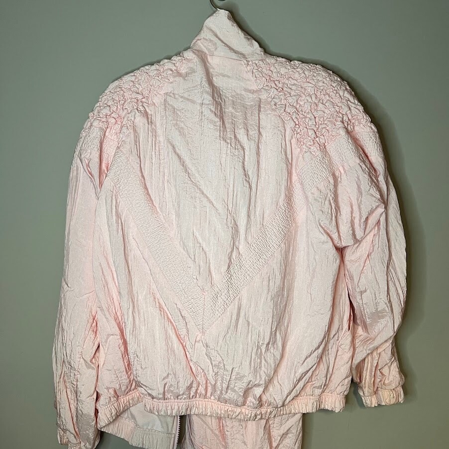 как выглядит VTG Baby Pink Ruffle Windbreaker Jacket Pants Two Piece Set 80s 90s Large фото