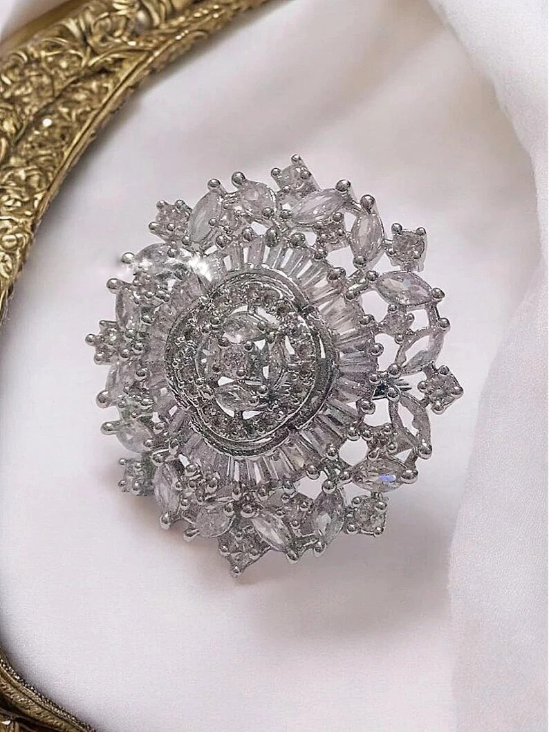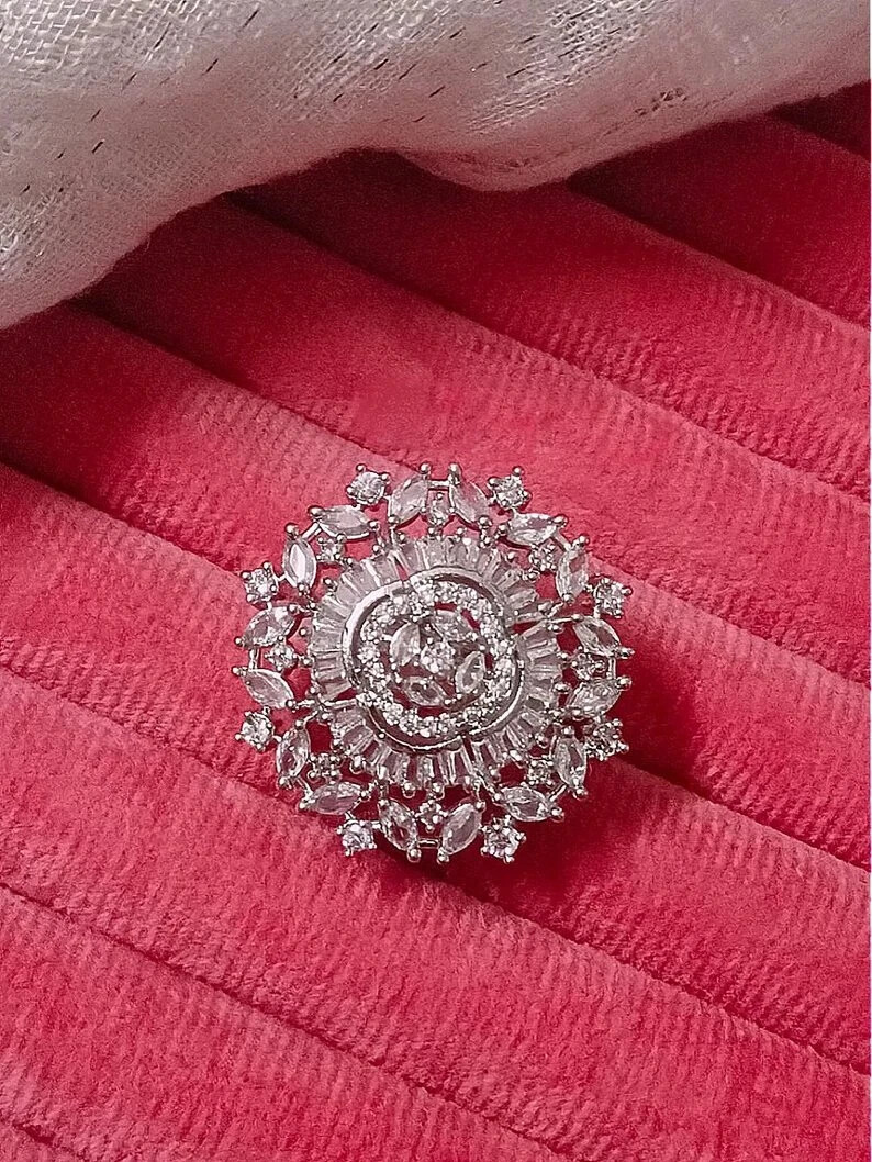 Elegant Classy Cluster Floral Shape Engagement Ring With 4 CT Simulated Sapphire