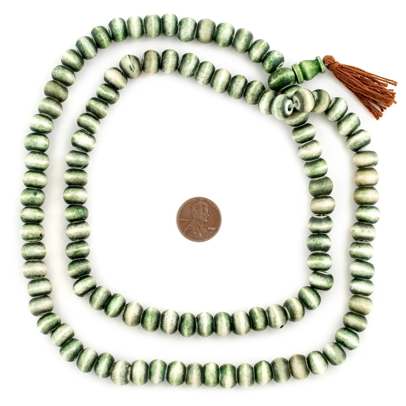 как выглядит Dark Green Rustic Bone Mala Beads 12mm Nepal Round Large Hole 34 Inch Strand фото
